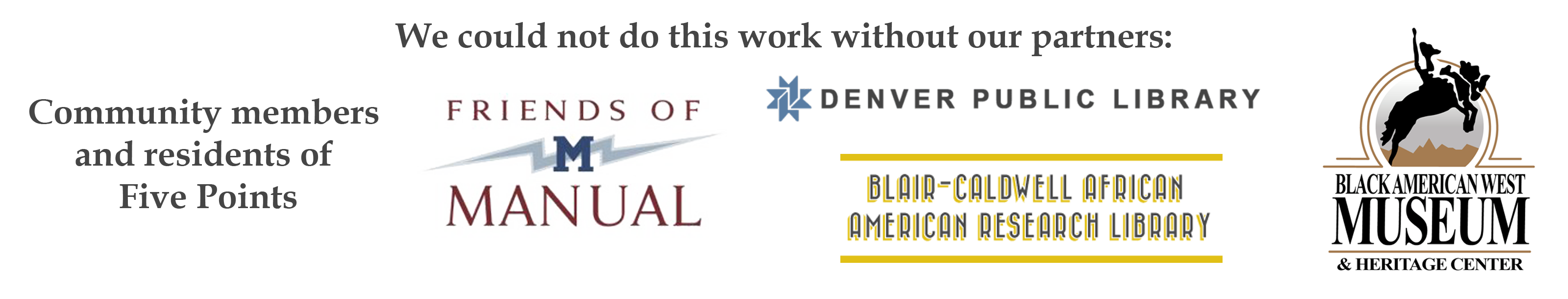 The project and a related exhibit were developed in partnership with the Black American West Museum and Heritage Center along with community members, and supported by the Blair-Caldwell African American Research Library (Denver Public Library) and Manual Highschool.