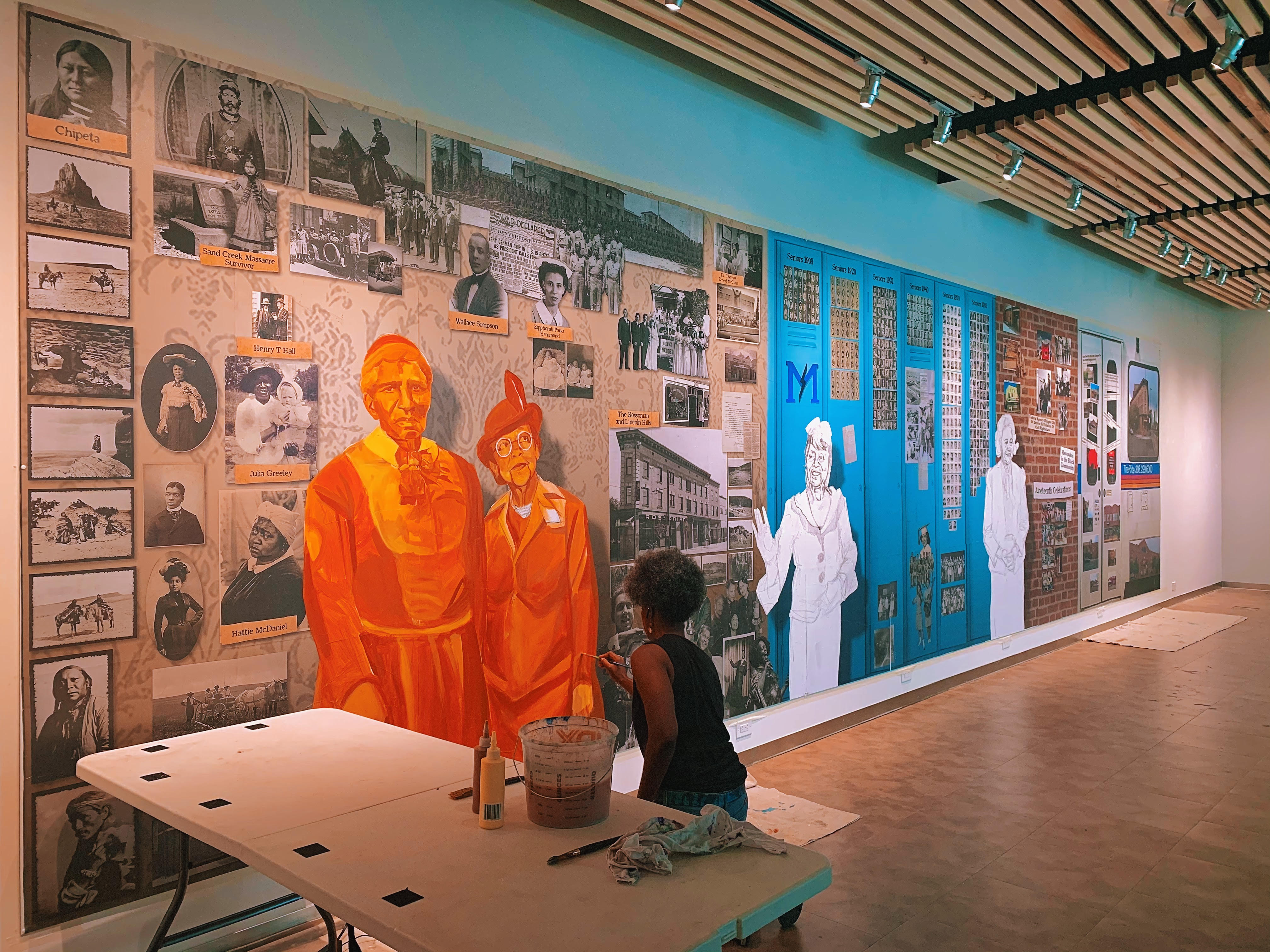 Denver-based artist Adri Norris making progress on the Five Points Plus exhibit mural.