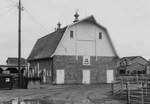 The 1913 barn is an excellent example of a gambrel-roofed barn using plain-faced ornamental concrete block for its lower level. Ornamental concrete block was a popular construction material in the first three decades of the 20th century and was often formed with hand-operated machines on site.