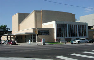 An angular view of the theater from across the street.