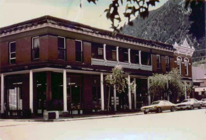 The first story walls are of rusticated sandstone, while the second story walls are brick. The building exhibits an eclectic mix of Late Victorian and Neoclassical architectural detailing. Between the floors, a Tuscan column supported roof extends out over the sidewalk. At the second story level of the Mill Street side, there is a recessed porch with a wooden balustrade that is topped with Ionic columns. Listed under Historic Resources of Aspen Multiple Resource Area.