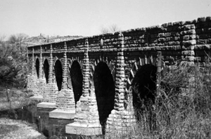Constructed in 1936 of locally quarried stone by an eight-man Works Progress Administration crew, this filled arch was faced with rusticated stone and features six, 14-foot span, semicircular arches springing from battered piers.