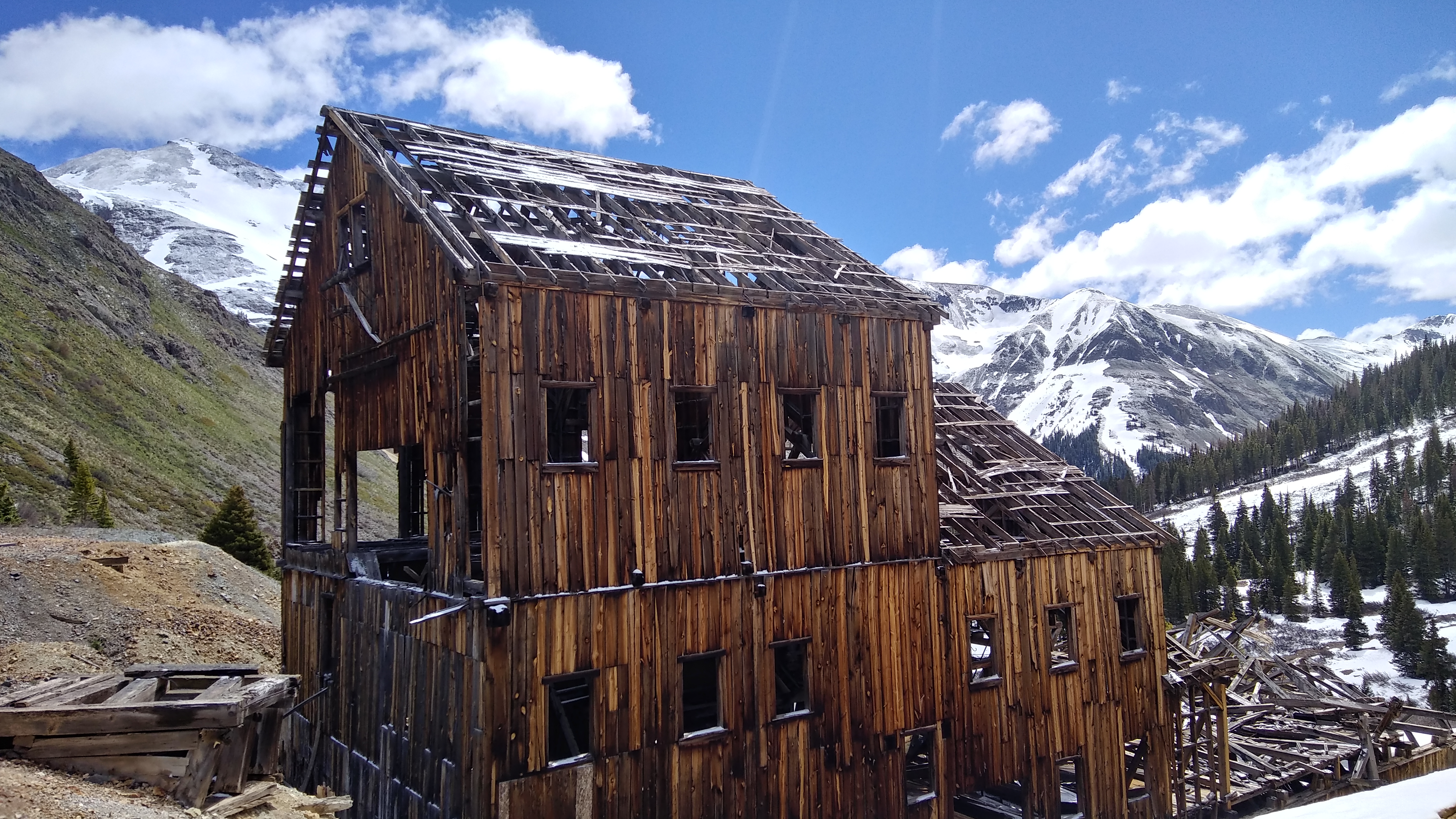 Constructed in 1912, the Frisco-Bagley Mill is a rare example of a prefabricated early 1900s concentration mill in northern San Juan County. The mill’s structural components were pre-cut, pre-fit, and number/letter coded in Silverton and then transported to the site for assembly. In addition to its distinctive method of construction, the mill represents an innovative adaptation of the standard mill design. To reduce operation costs, the majority of the milling equipment was installed on a single level and sheltered by a gable-roof superstructure. Concentration mills that retain a significant portion of their superstructure are rare in northern San Juan County and the Frisco-Bagley is the only known example of this design variation.