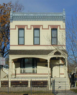 Originally constructed at 2335 Arapahoe St. in 1890, the two-story flat roofed brick house sits on a stone foundation. Simple in massing and detailing, its most distinctive features are the dentils, end brackets, and finials of its pressed metal cornice. The house was the residence and office of Dr. Justina Ford from 1912 until her death in 1952.
