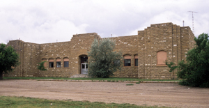 Three stone buildings, a gymnasium flanked by an elementary and a high school, represent the work of several New Deal relief programs administered in eastern Colorado. Constructed over an eight-year period, the buildings provided employment in Kim during much of the Great Depression. Construction on the gymnasium began in December 1933 as a Civil Works Administration project. It was completed in the spring of 1935 after being transferred to the Federal Emergency Relief Administration and finished by a Works Progress Administration project. The school district submitted a successful WPA application for the 1937 elementary school. The WPA approved a third project in 1938 for the county high school building, which was dedicated in January 1941.