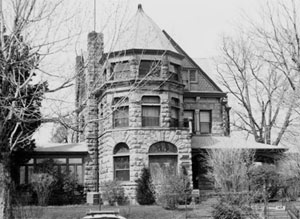 Lang and Pugh utilized the Richardsonian Romanesque style in the design of this 1891 2½-story, stone residence. The house is dominated by the three-story, octagonal corner tower. The wide front porch extends to form a welcoming porte-cochere over the entry drive. The property is associated with the West Colfax Subdivision Historic Structures Thematic Resource.