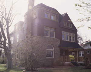 She moved to this house in the late 1890s to be near her sister, Mrs. Ralph Voorhees. The architects were influenced by the Romanesque style in the design of this 1891 2½-story stone and shingle-sided building. The entry to the house is through a porch with a round arched entry of large radiating stone voussoirs. The property is associated with the West Colfax Subdivision Historic Structures Thematic Resource.