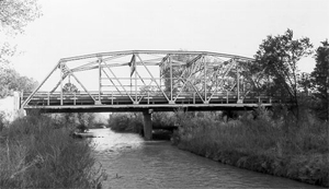 Crossing the St. Charles River west of Pueblo, the 1945 steel rigid connected Parker through truss structure's single span runs for 150 feet. The bridge was designed by the Colorado Department of Highways, fabricated by Midwest Steel & Iron Works, and built by Frank M. Kenney.