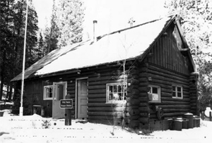 This one-story, duplex-like Rustic style log building was constructed in 1932.  It is divided into a three room ranger station and a four room seasonal residence.