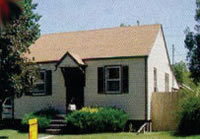 The Minimal Traditional was very loosely based on the Tudor Revival style of the 1920s and 1930s. It was a relatively small, one-story building often with a predominant front facing gable section or gabled covered entry, echoing Tudor features. Rather than the steeply pitched roof of its Tudor predecessor, the Minimal Traditional roof pitch was low or intermediate with closed eaves and rake. The simplified façade features few architectural details other than decorative shutters. Typical wall materials include cement asbestos shingles in an assortment of colors, brick (usually striated), wood, or metal siding (a replacement material).