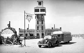 The development of amusement parks in the late nineteenth and early twentieth centuries often manifested itself in Novelty architecture. Automobile tourism fostered an associated roadside industry of gas stations, diners, motels and various attractions “not to be missed.” Proprietors employed Novelty architecture to catch the eye of passing motorists.