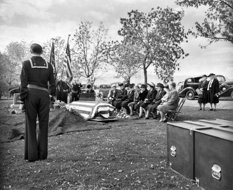 This photograph captures the re-interment ceremony of Navy Petty Officer First Class Daniel Thornburg Griffin of Colorado Springs. Griffin attended Colorado Springs High School before he joined the Navy. On the morning of December 7, 1941 he was on duty with his PBY Catalina in Kaneohe Bay, Oahu, Hawaii Territory and was killed during the Japanese attack that morning. He was first buried in Hawaii in December 1941 and was returned to Colorado Springs in October 1947. Daniel T. Griffin was the first Coloradoan killed in the attack on Pearl Harbor, and is very likely the first American killed during the attack. This artifact is significant to the nation, the state of Colorado, and the City of Colorado Springs.