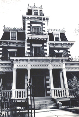 The mansard roof with either concave or straight sides is the key to distinguishing the Second Empire style. Although not extremely common in Colorado, high style examples exist, most notably the Tabor Hotel in Leadville, the Bloom House in Trinidad, and the Maxwell House in Georgetown. Additional characteristics include a projecting bay or tower extending above the roofline, either contoured or to one side, pedimented windows or molded surrounds, quoins and roof cresting. Cornices are bracketed, reminiscent of the Italianate style.