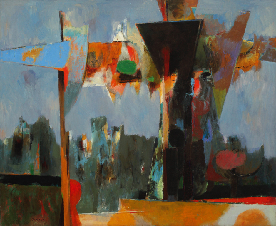 This version of Arnest’s "Signs" painting from 1950–51, an oil on canvas, is a good example of his referentially abstract style of the early 1950s. (The other version is at the Walker Center in Minneapolis.)