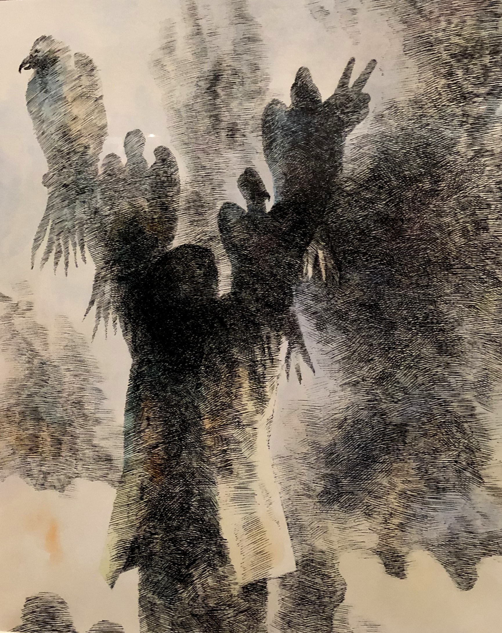 The war in Vietnam and the Watergate scandal in the late 1960s and early 1970s occasioned fifty-one drawings collectively titled Scenes from Life , shown at the Denver Art Museum in 1977 and now in the Colorado Springs Fine Arts Center collection. A motif departing from Arnest’s typical tone and subject matter, Scenes represent his effort as an artist to distance himself from the era’s “silent majority” whose inaction condoned the incalculable harm being done to others at that time. Scenes, in his words, “critique the passivity and indifference of the fortunate and comfortable, the unthinkingly and conventionally cruel.” They recall Francisco Goya’s Los Caprichos series whose eighty prints constitute an enlightened, tour-de-force critique of eighteenth-century Spain and humanity in general. After the dark outpouring of Scenes from Life, Arnest revived himself with landscapes, economic and without intense detail but somewhat nostalgic.