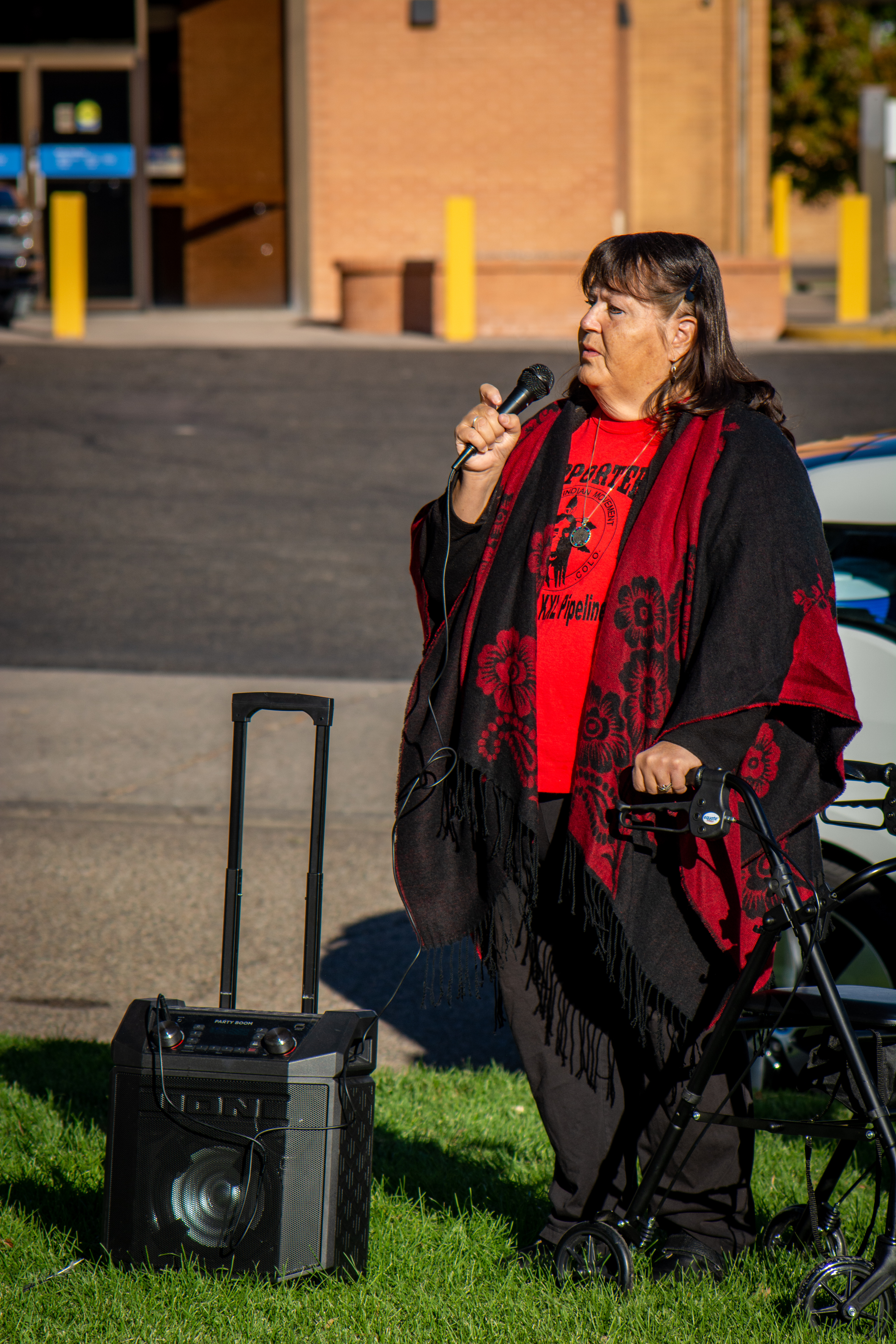 Rita Martinez at the Indigenous Peoples Day protest, 2018, Pueblo, CO.