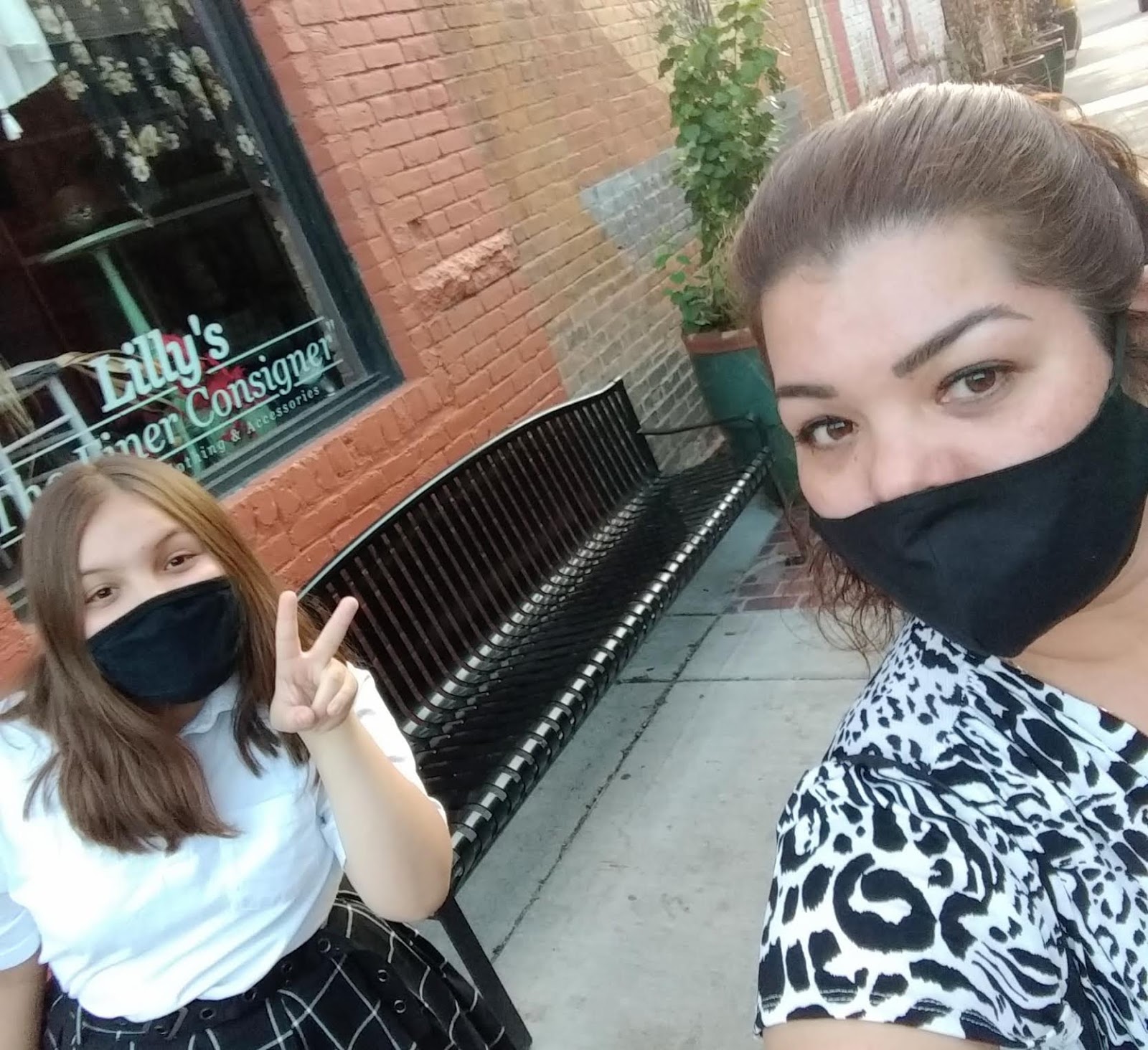 Indhira Barrón and her daughter pose in their face coverings.
