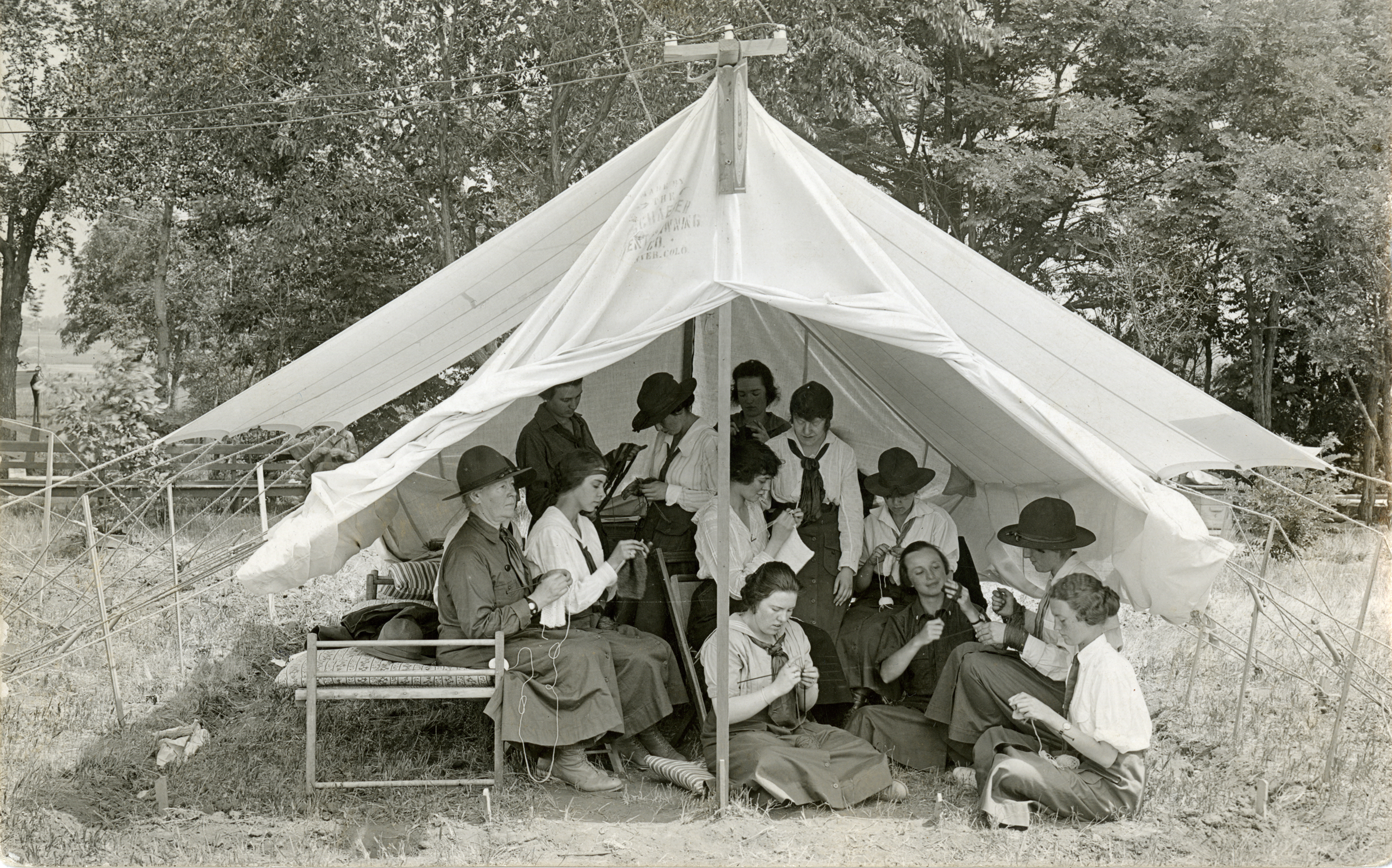 Denver’s Sisters of Loretto generously opened the campus of their private Catholic school for girls to the National Service School for its fifth encampment during the 1917 summer break. Thirty-five white-walled canvas tents went up on the grounds to house attendees, instructors, and camp offices. The commanding Army officer at Fort Logan, General Robert Getty, detailed a bugler and two sergeants to provide instruction in military calisthenics and drilling, and over the next three weeks more than 100 women received intensive training in skills deemed useful to the war effort.