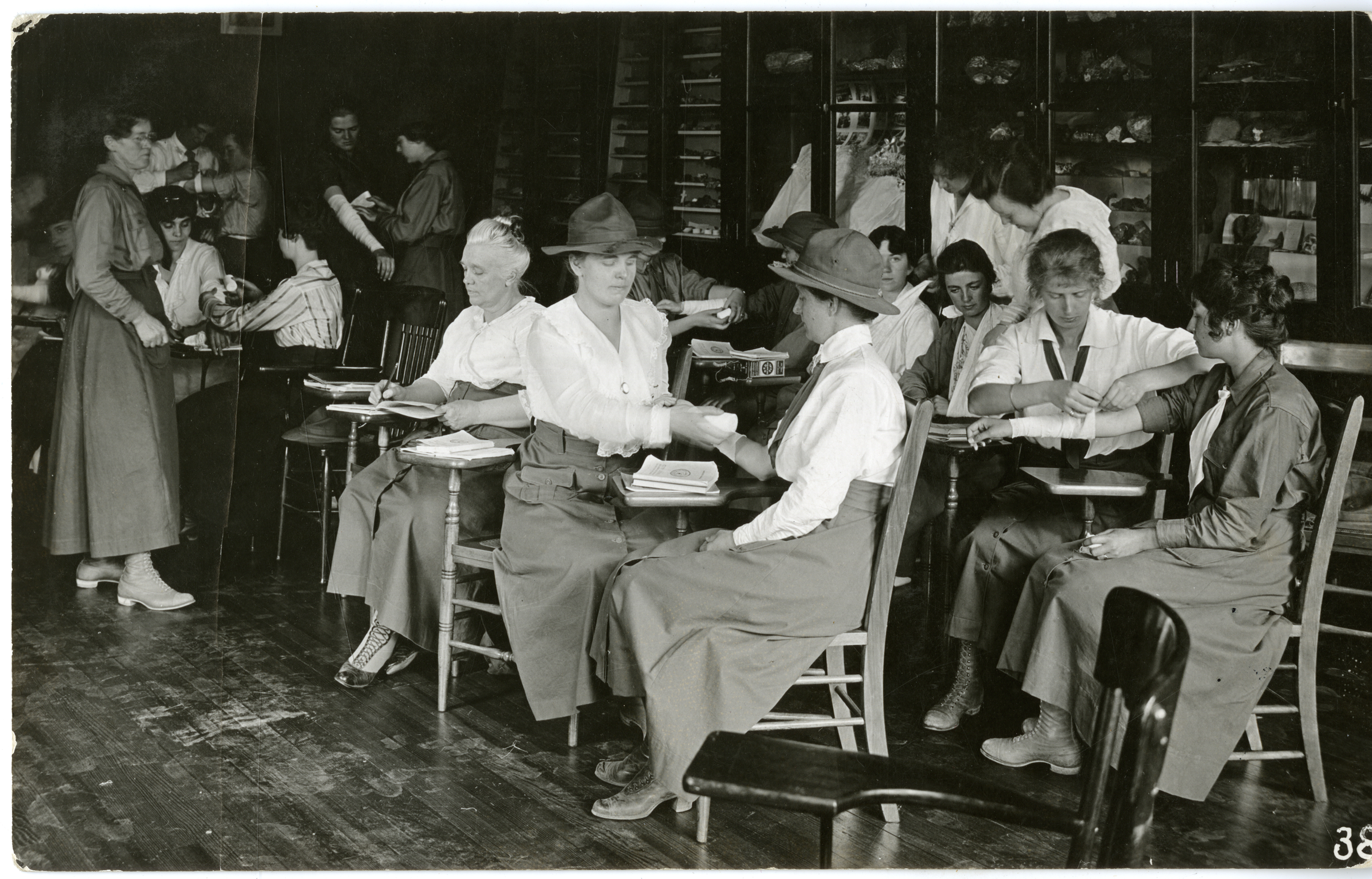 Women learn first aid at the National Service School at Loretto Heights Academy, July 1917.