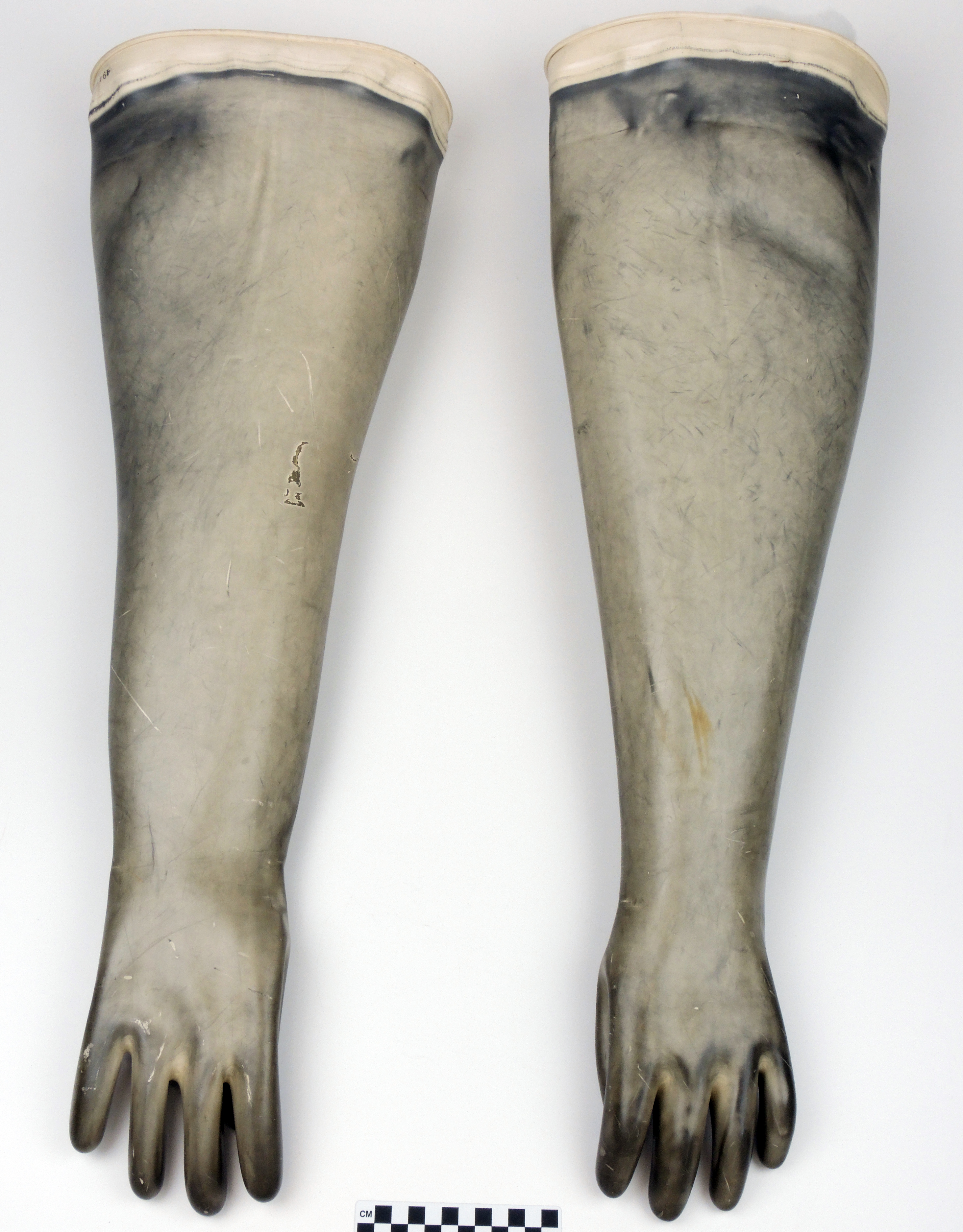Anti-Contamination Gloves like these were used by Rocky Flats workers in Colorado during the Cold War period between 1947–1991. And of course, the totally gnarly Dr. Brenner and his colleagues at the Hawkins Lab. You can see these gloves in person at History Colorado Center, also part of the Zoom In exhibition. Radical!