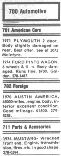 It seems like we all know a Joyce Byers or two in our lives—and maybe we feel like the Joyce Byers character, ourselves. Sometimes, life totally gives you a Ford Pinto. From the Golden Transcript, May 12, 1983.
