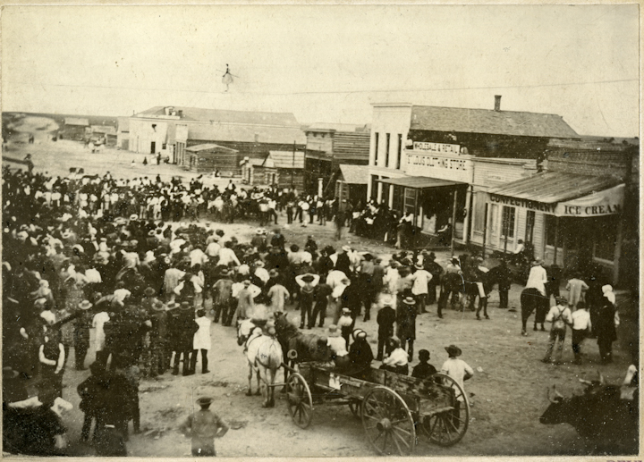 On the earliest side of photographic history of Denver, this event took place on Larimer Street between the New York Store and Graham’s Drug Store. The photographer, George D. Wakely, was born in England and was well known as a photographer in Denver from 1859–1864.