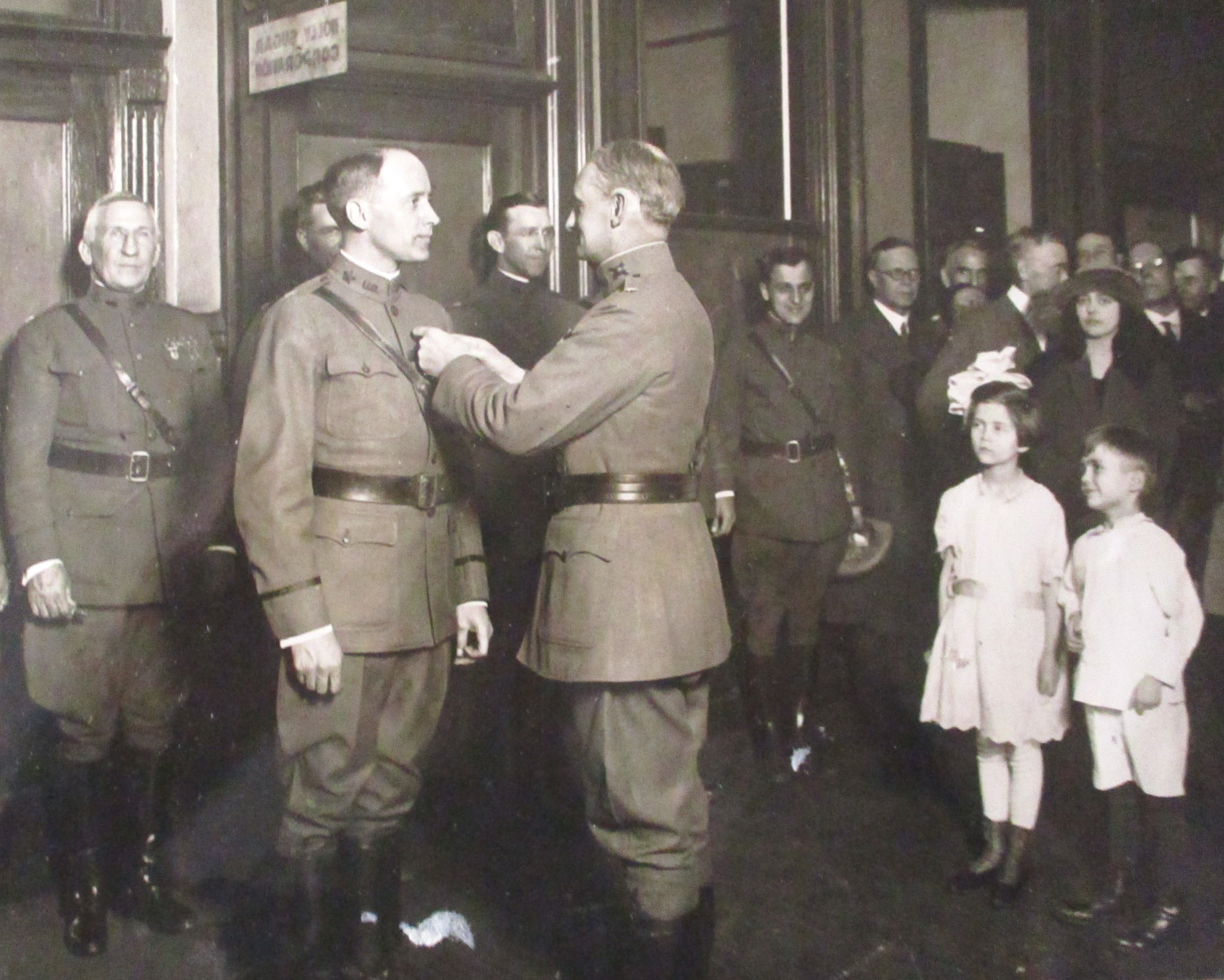 Van Cise was formally awarded a Distinguished Service Medal for his work as an intelligence officer in World War I in a 1922 ceremony, while his wife, Sara, and children Eleanor and Edwin looked on.