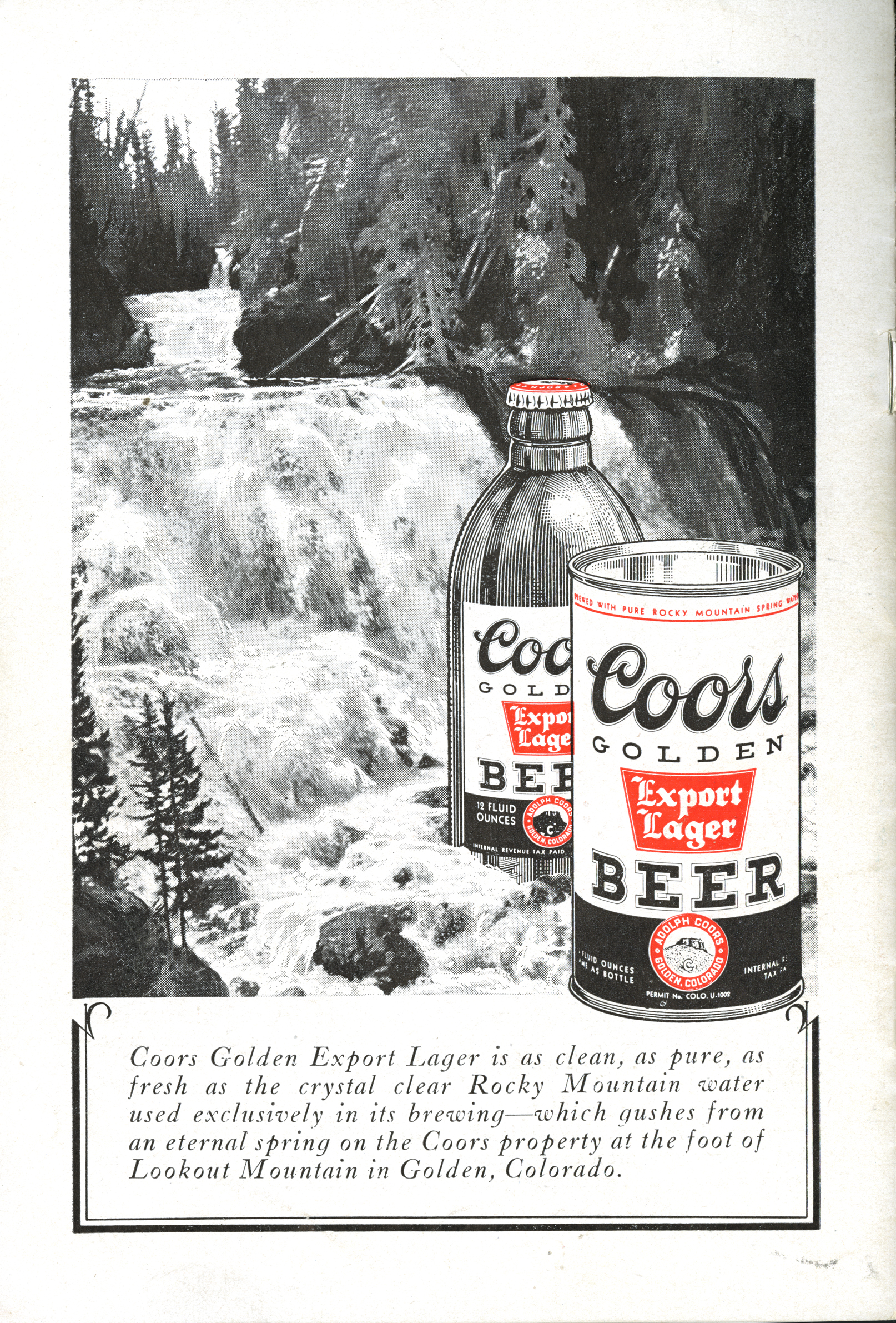 This 1936 ad was part of a long Coors marketing tradition of convincing customers that its beer was special because of the natural splendor of the Colorado high country.