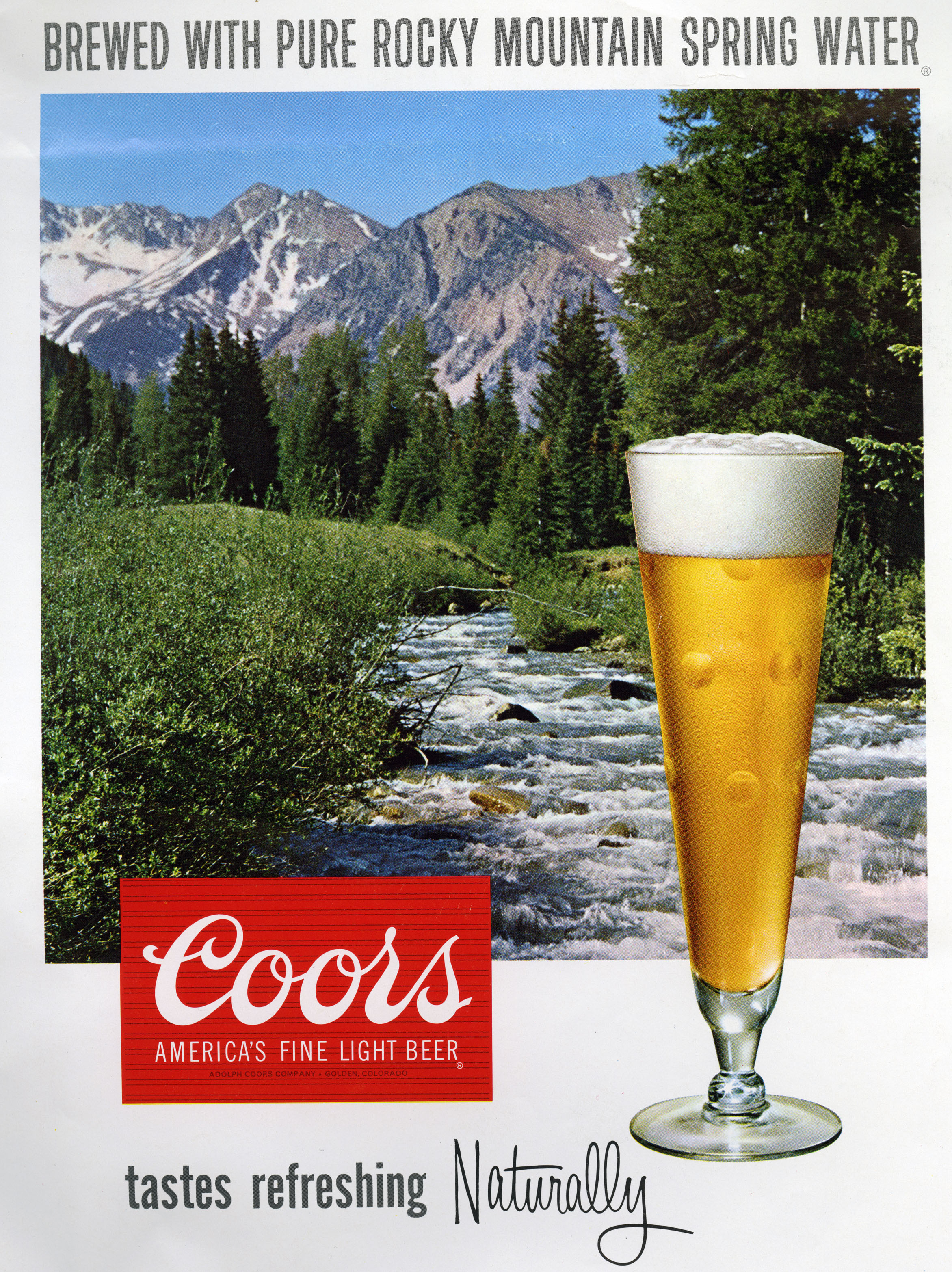 Subsequent advertising spanning more than seven decades repeatedly drew a connection between the beauty of the Rocky Mountain scenery and the quality of Coors beer. The messaging stuck, and as Coors expanded its distribution and its marketing budget, the idea that Colorado was a special place with special beer went out across the nation—branding not only the beer, but the Centennial State along with it.