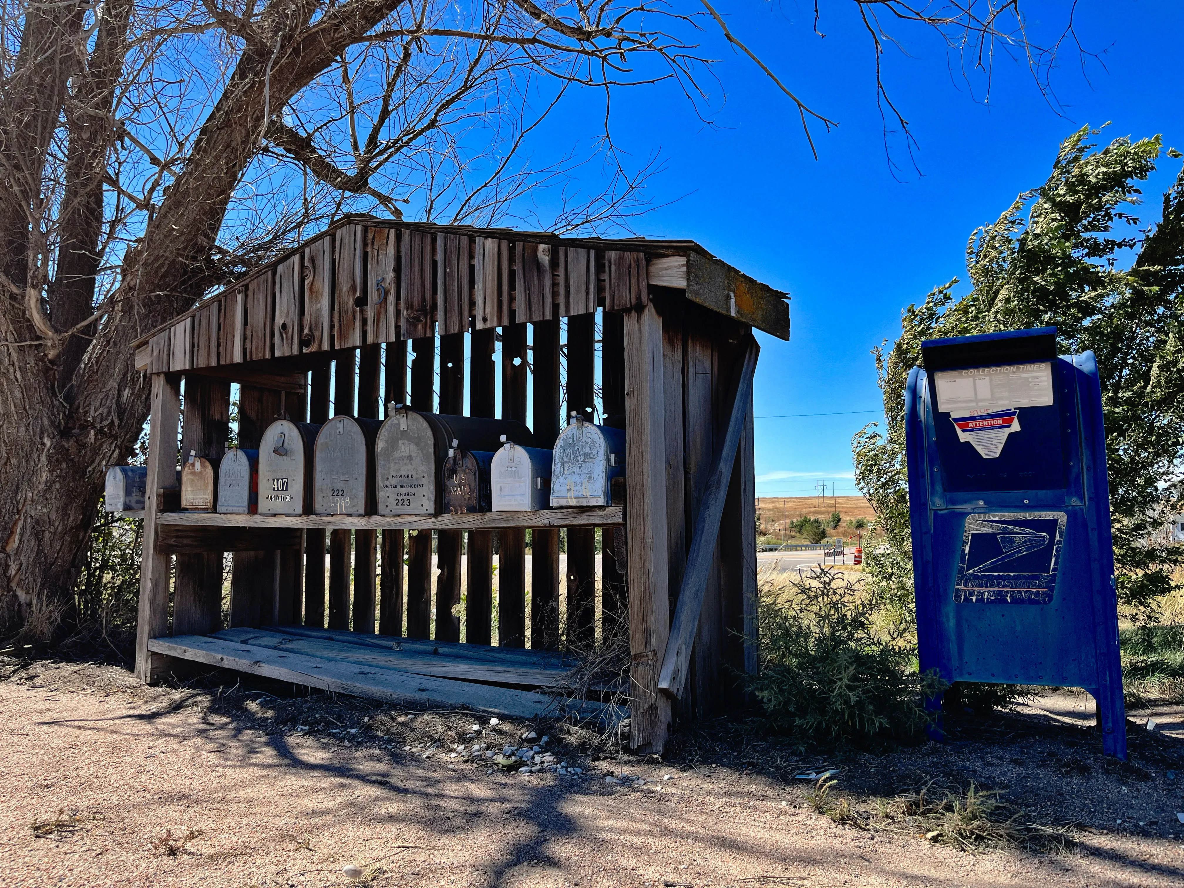The last US Census to capture Last Chance’s population data was in 2000, at a whopping twenty-three people. Today, the town of Woodrow, fifteen minutes to the north of the ghost town, carries the mail for Last Chance, which sits on the corner of US Highway 36 and CO State Highway 71. In fact, the town begins with a gaggle of bygone mailboxes scrunched together, neighbored by an official US post office box that appears to still be active. The day I visited the site, the wind hollered across the plains, and it drew me back into my childhood, in the Colorado foothills, sleepless nights saturated with endless gusts and gales blasting through the Continental Divide, up and over the Rocky Mountains where I grew up. I looked around for any “No Trespassing” signs, but seeing none, I proceeded, with caution.