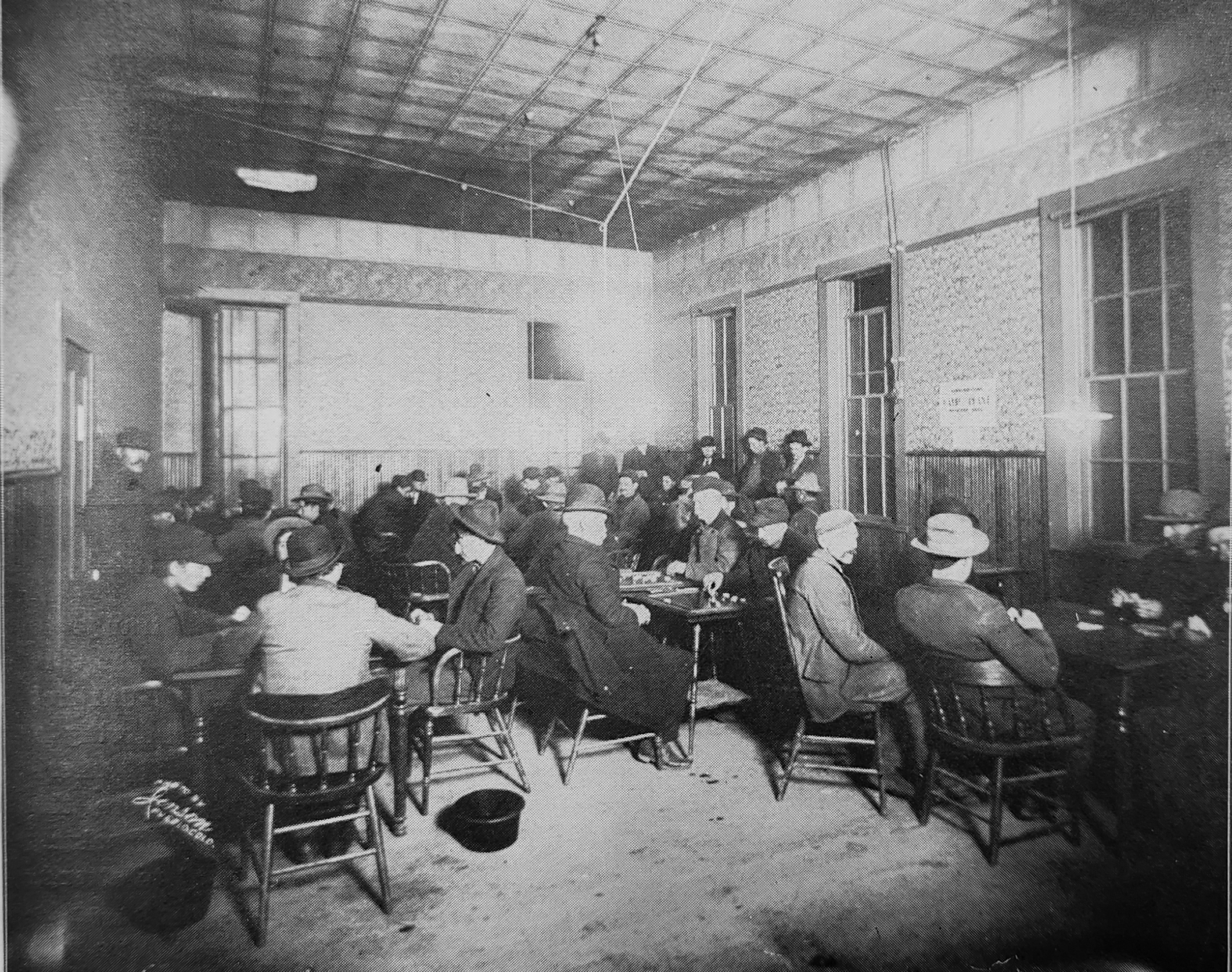 Men socializing in the card and game room at Pueblo’s Minnequa Works, around 1901–1902.