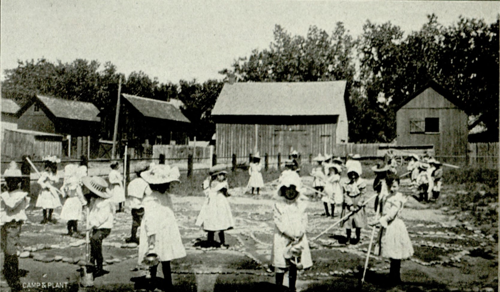 Children of the Corona Kindergarten in Pueblo working in their garden, around 1902.