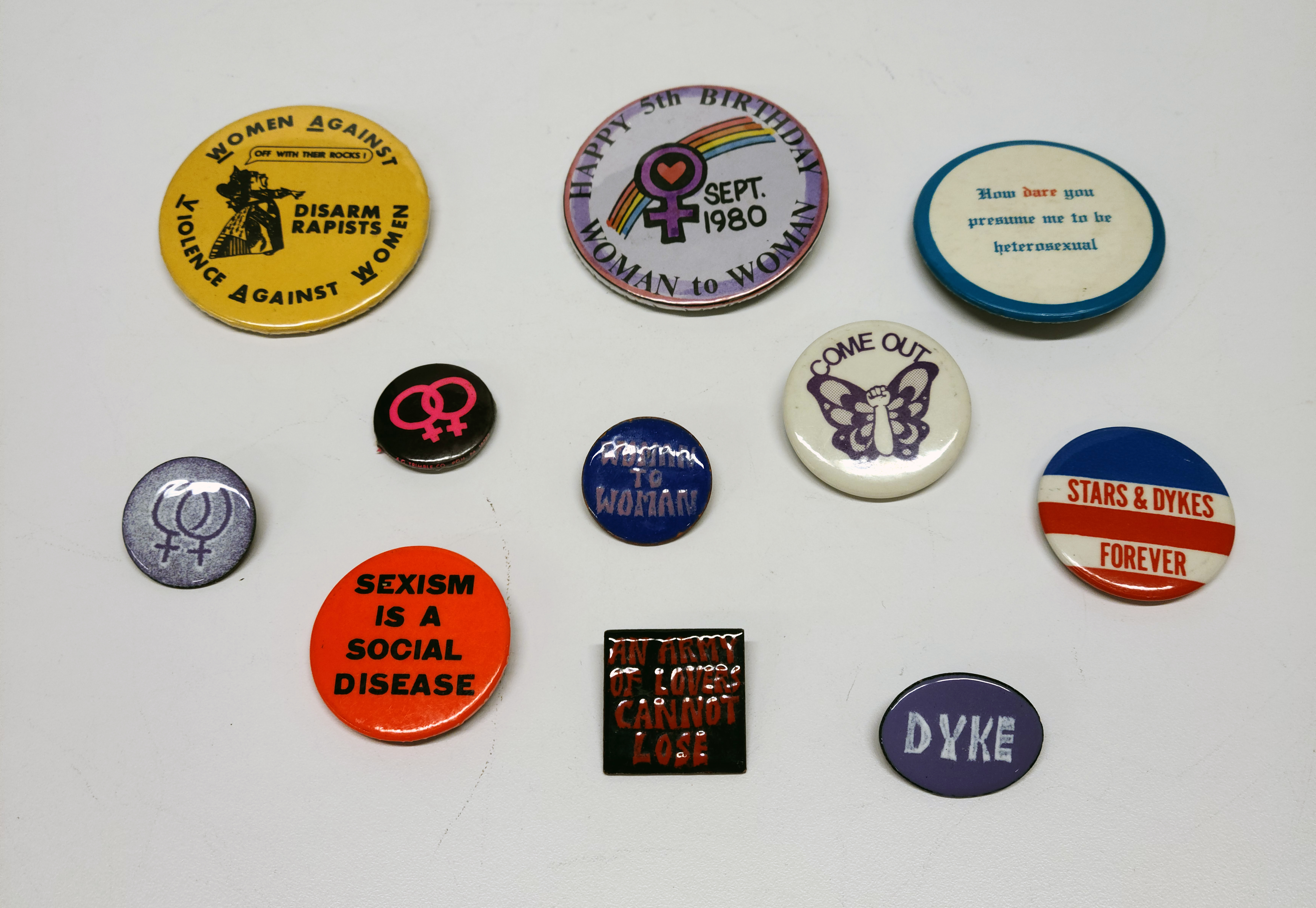 Vicki Piotter, who operated Woman to Woman Feminist Bookcenter and was involved with Big Mama Rag, a feminist newspaper, donated these buttons to History Colorado.