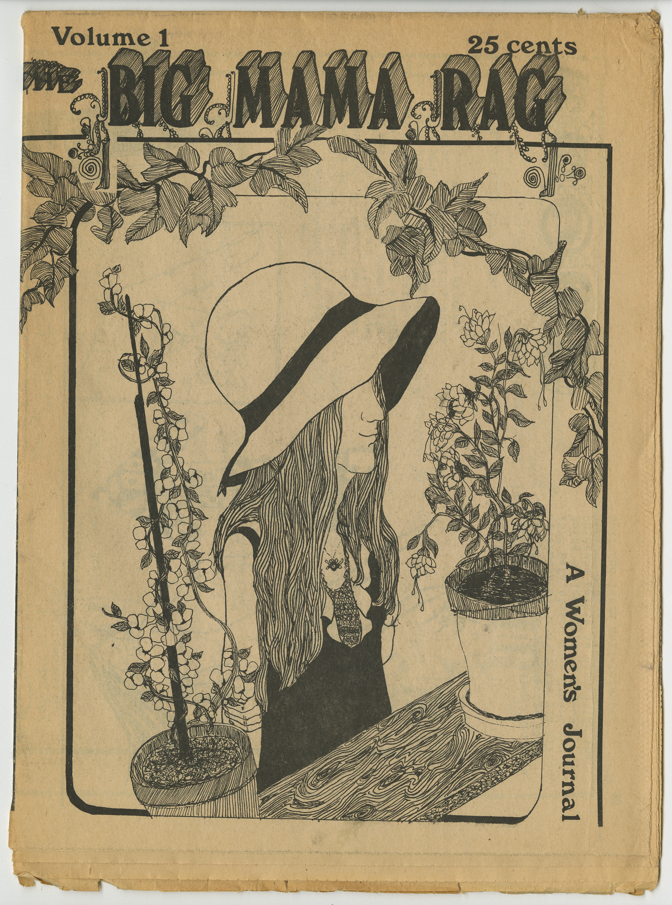 Out of a basement on Gaylord Street in Denver, Colorado, and into the homes of women all over the state, the lesbian newspaper Big Mama Rag was a point of connection for lesbian feminists. Some of the women who founded the paper were lesbian feminist themselves, like Chocolate Waters or Tea Schook and would often write poetry, columns, and op-eds revolving around lesbians. In BMR’s first issue in 1973 there was a dedication for the women readers with, “Our hope is that the feelings expressed through Big Mama Rag will relate to the feelings of all women everywhere.” Several issues of the newspaper focused on feminism and lesbians. Enfolded in one special, summer issue, “We’re not gay, we’re angry,” there was an interview with lesbian feminist, Del Martin. In her interview, Martin poses the concept of lesbian feminists as crucial to the movement and to lesbians' own self-liberation. For women to truly begin to question patriarchy, they must understand the lesbian lifestyle which decenters men and finds love, compassion, and even sex with another woman. In the midst of the political pieces and detailed, first-person accounts of protests, a woman saw a 1974 poem by Chocolate Waters, reading: