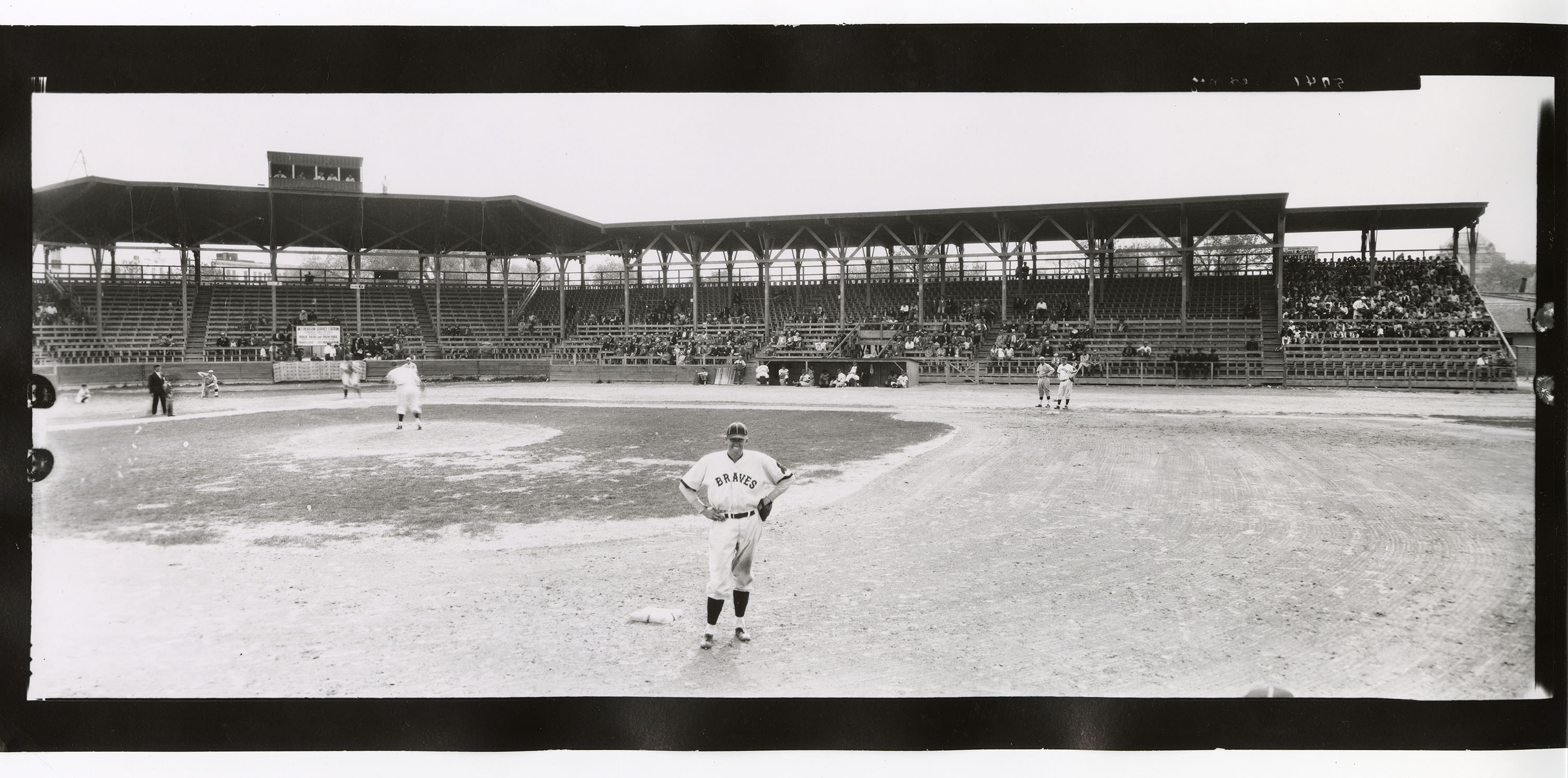 Minor league baseball team the Pueblo Braves playing or practicing in the old Mineral Palace Park field, about 1930–1932.