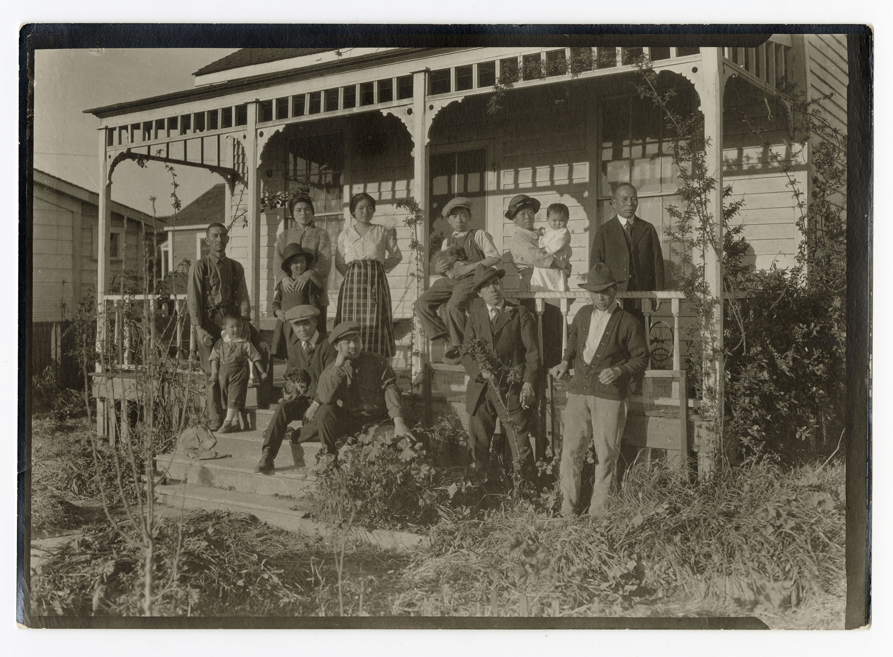 Japanese Americans on the porch of a house in Pueblo's Bessemer neighborhood, date unknown.