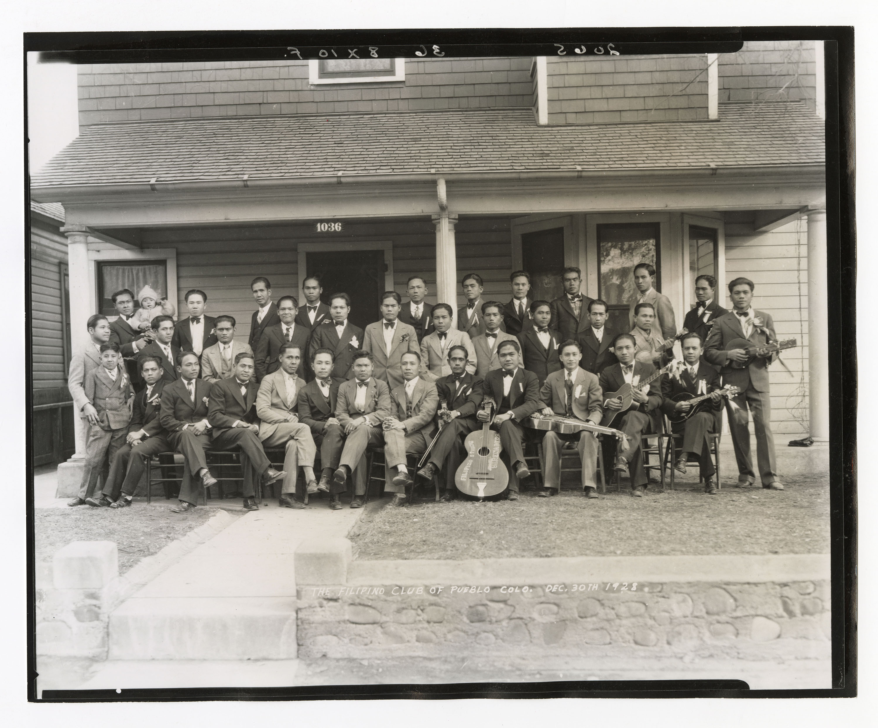 The Filipino Club of Pueblo, including their band, photographed December 30, 1928, by Frank Muramoto.