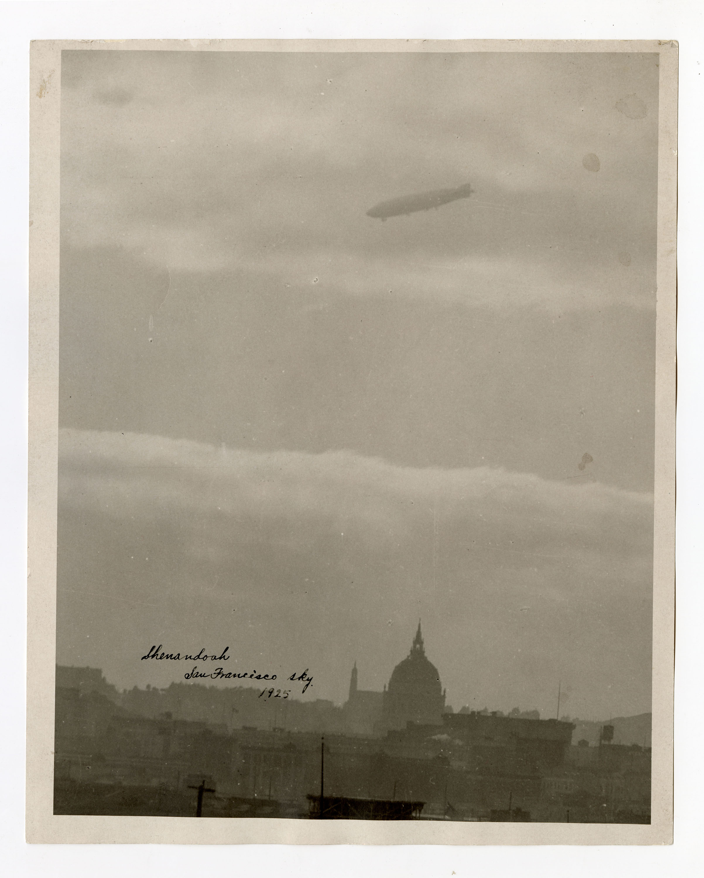 The zeppelin USS Shenandoah over San Francisco, viewed by Muramoto during a trip in 1925.