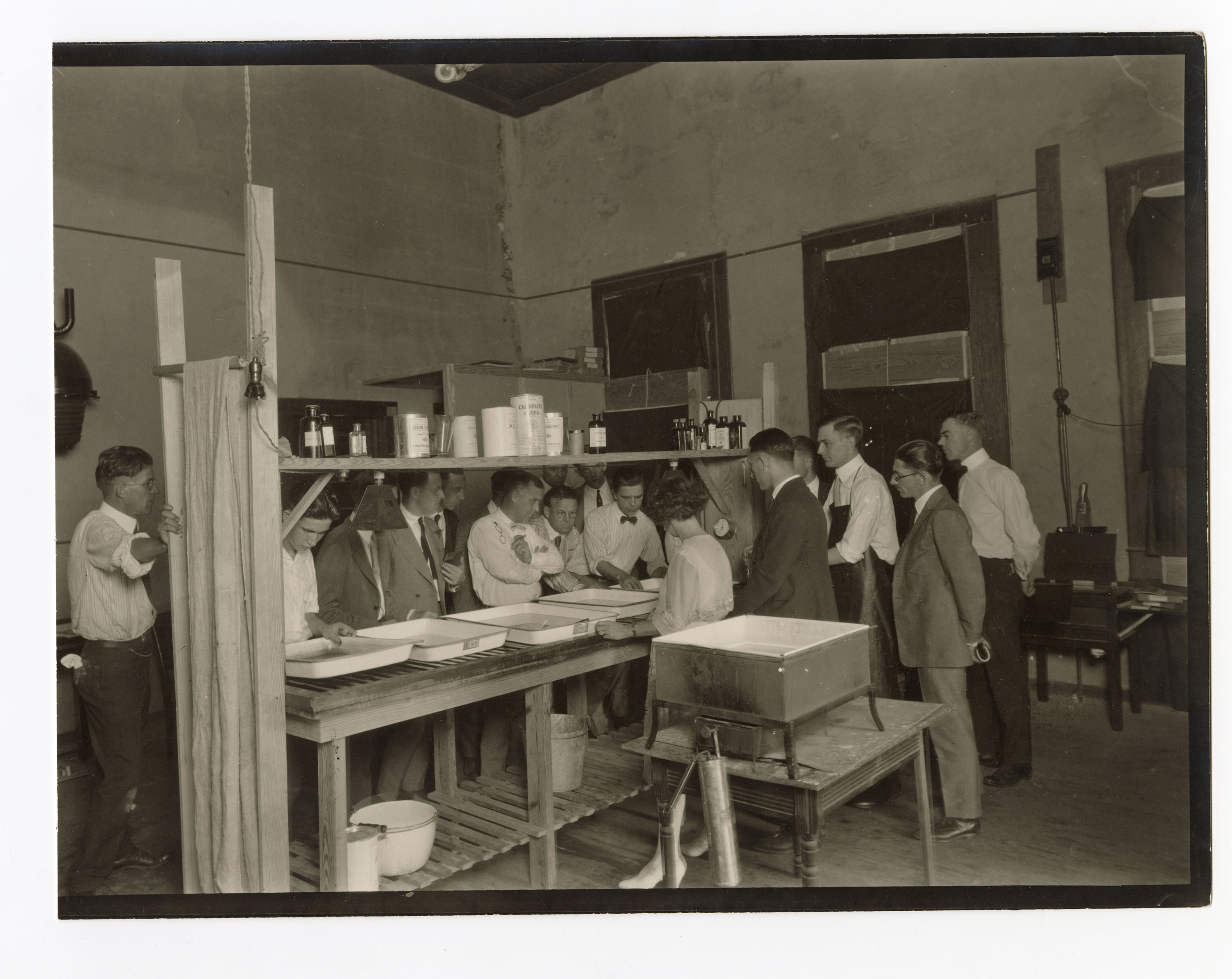 Students touring the dark room at De Luxe Studio.