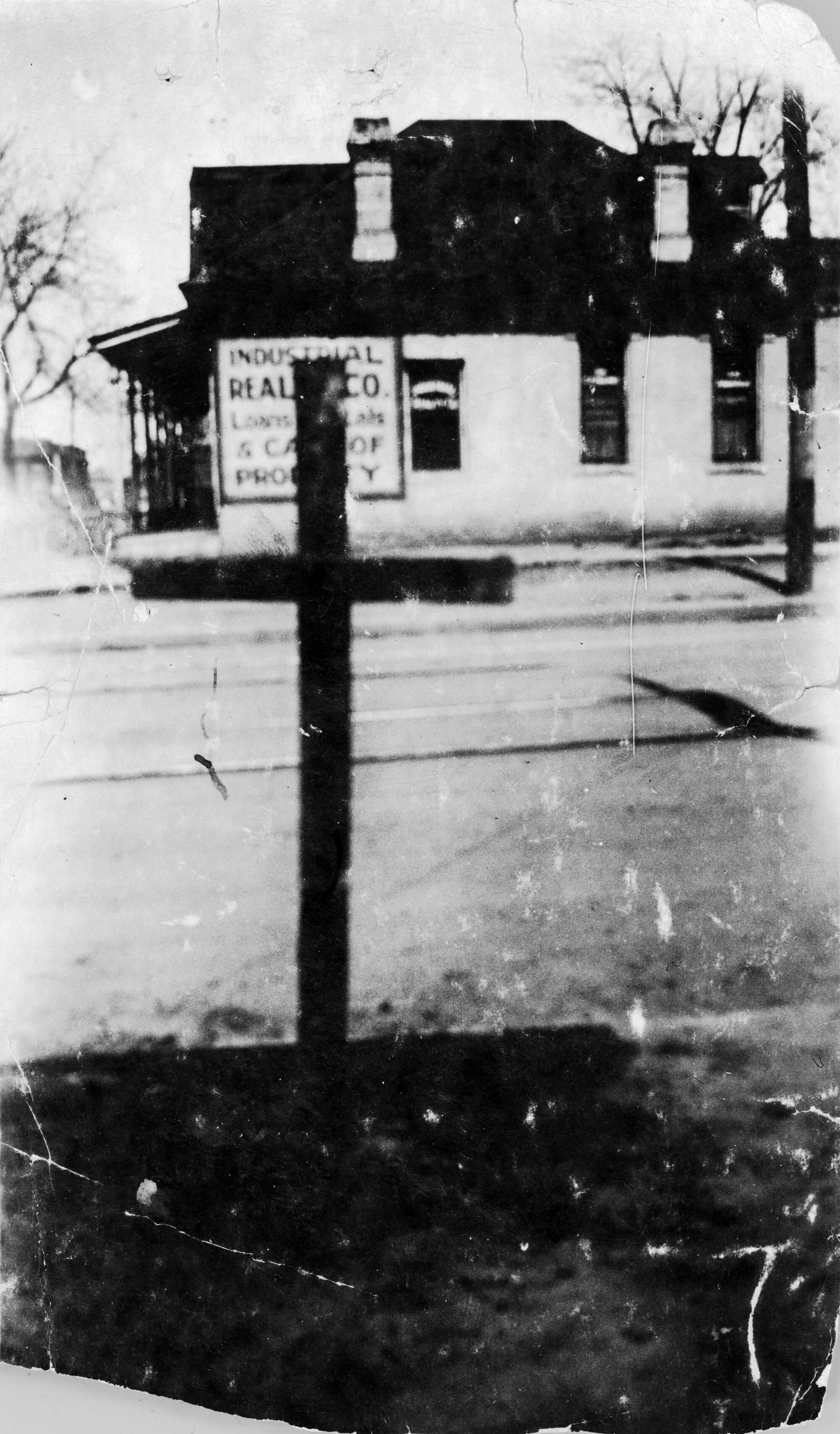 In 1925, the Denver Ku Klux Klan burned a cross on the lawn of Dr. Clarence Holmes, a Black dentist in Five Points and early member of the Denver NAACP. This photo of the burnt cross was taken shortly afterwards.