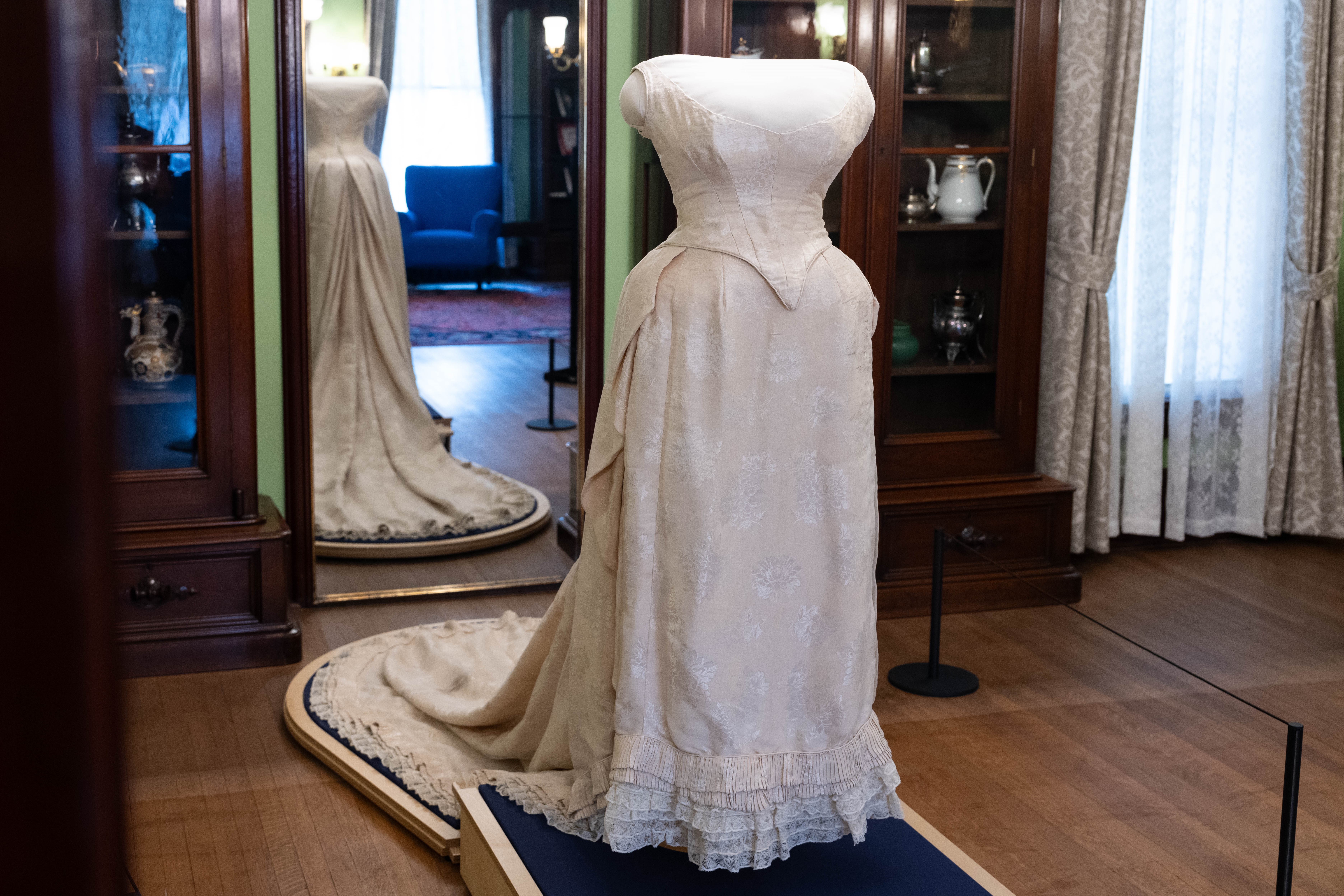 The wedding gown of Elizabeth “Baby Doe” Tabor on display at the Center for Colorado Women’s History, 2025.
