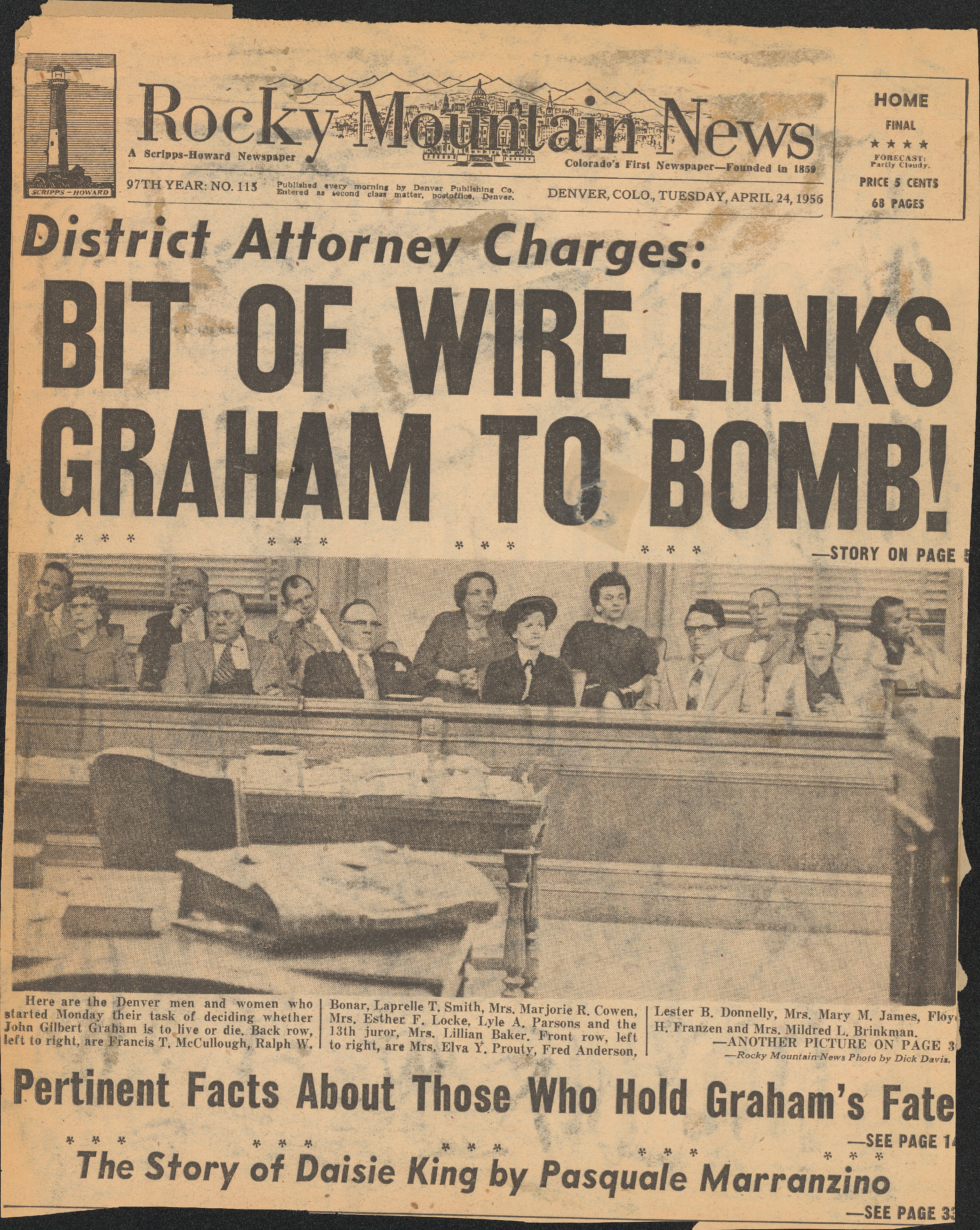 News reporter Jack Gaskie explained the daunting job ahead for jurors: “Wipe your mind clean. You’ve never heard of John Gilbert Graham. You know nothing of the burst of light in the night air over Longmont on Nov. 1. Is that difficult, impossible? This is what the jurors must do.”