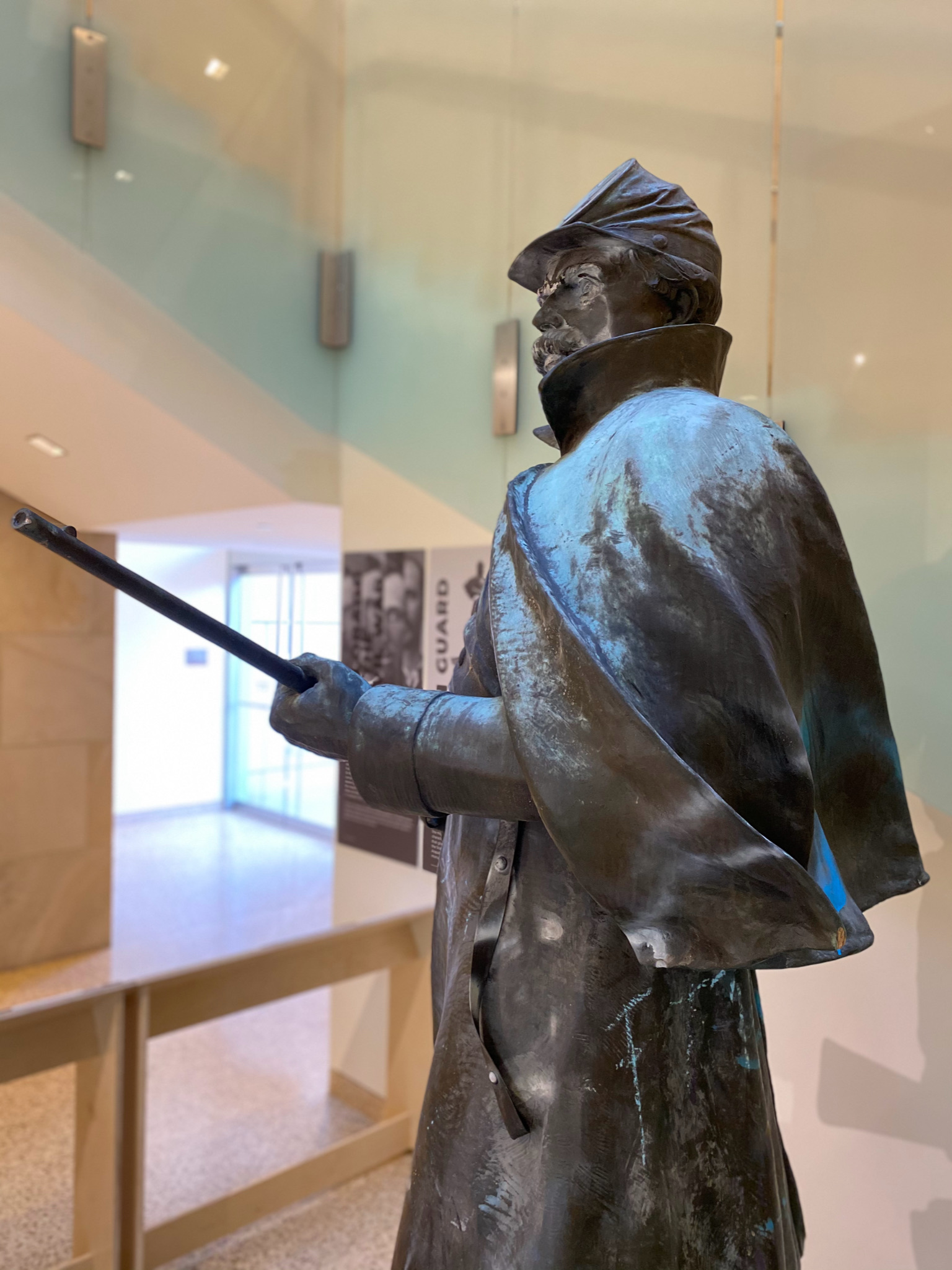 At History Colorado, we had heard some people saying in the press that “controversial monuments belong in a museum." Good idea, we thought. Dawn DiPrince, our director, texted me: “Could we bring it to the History Colorado Center?” And so, with the blessing of the Capitol Building Advisory Committee and the amazing skill of our Exhibition Development, Collections Access, and Design & Production teams, we did exactly that, installing “On Guard” that October at the History Colorado Center, the downtown Denver flagship museum in our statewide system.