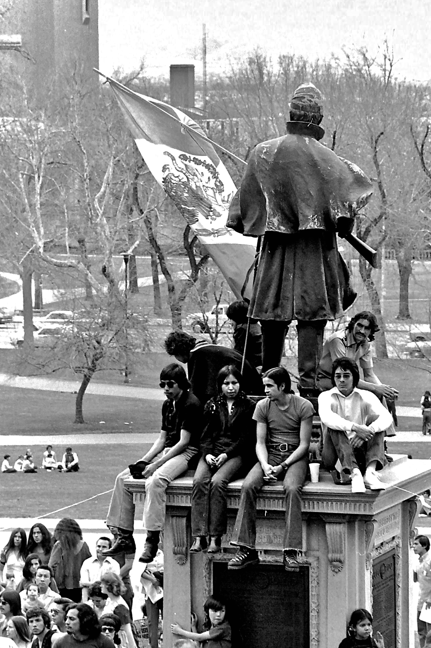 Standing in front of the Capitol made the monument a focal point for generations of protests. Chicano activists incorporated it into their civil rights protest in March 1974.