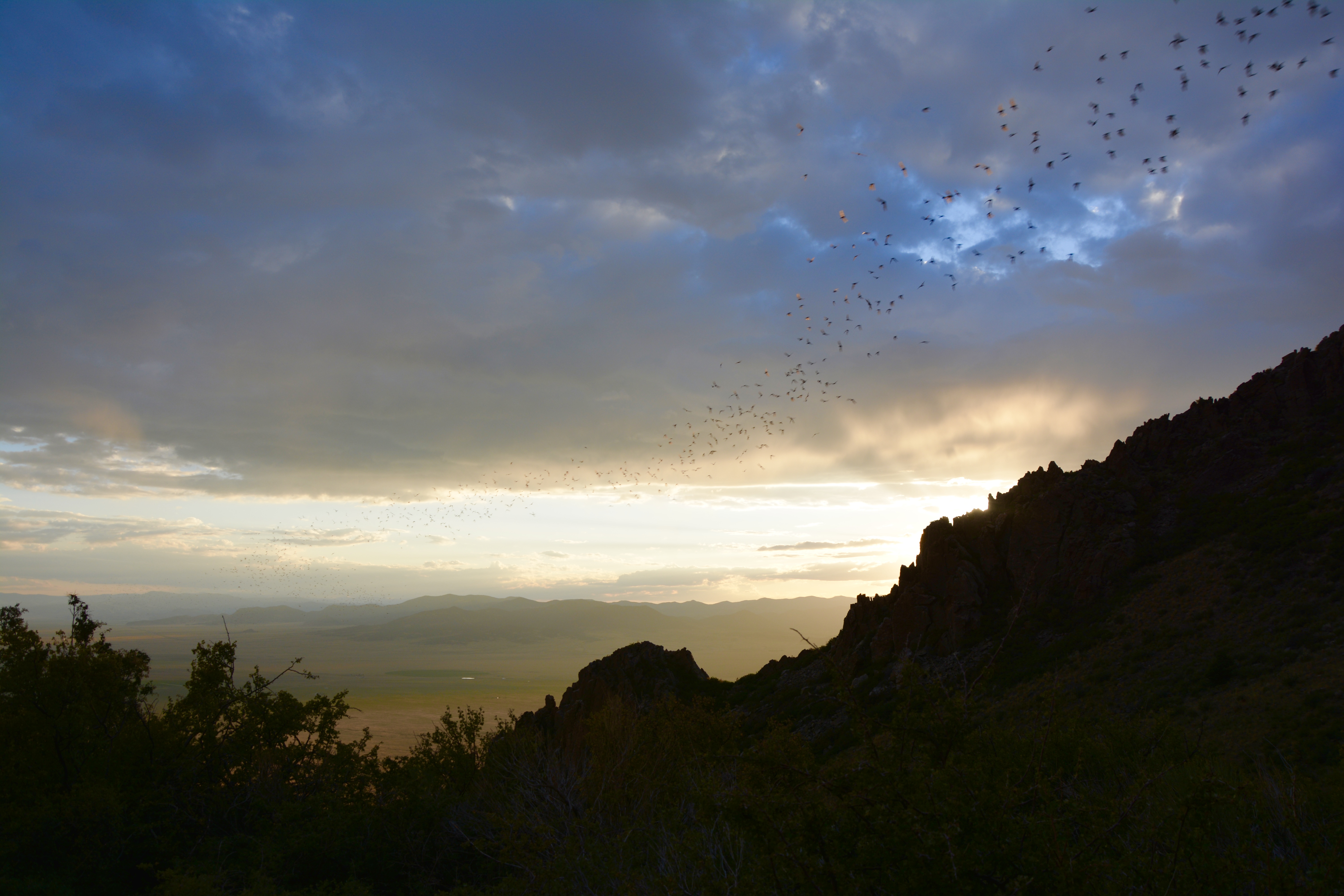 The guide from Valley View Hot Springs rounded the corner, his face falling as he realized the bats had already taken off. Their wings caught the sunlight as they flew toward their nightly meal, making each bat glow gold. The guide said this was a rare treat, something he had seen only a handful of times in over a hundred trips to the cave.