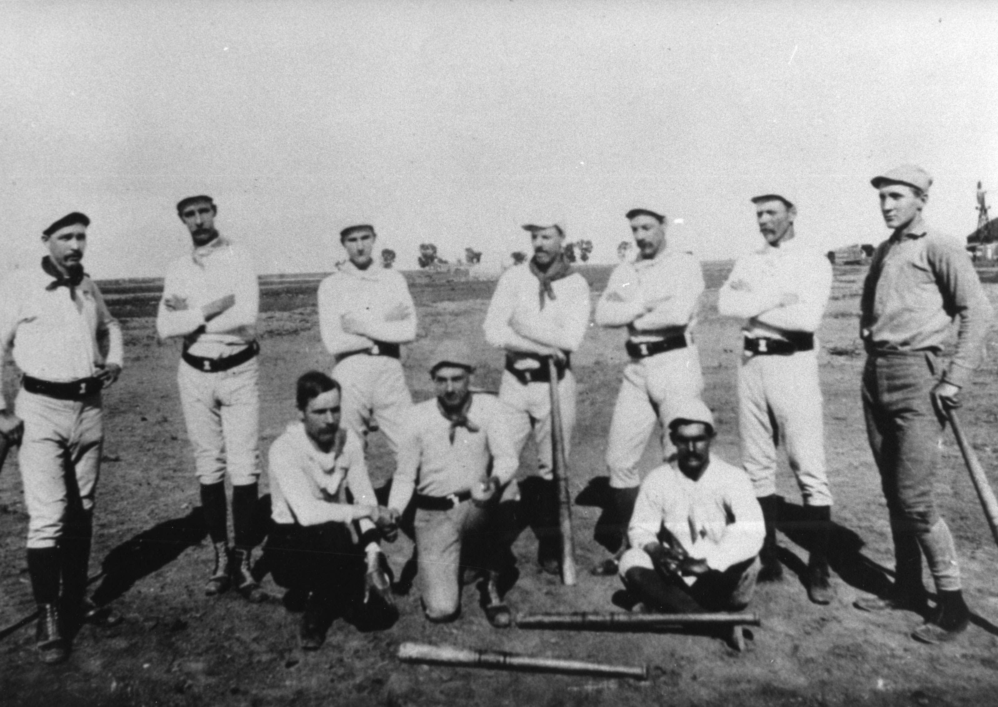 Silver Plume Championship Mountain Team, 1889. Back row, from left: Billy Cliff, Patty Downs, Johnnie Conley, Simpson, Tom Cowles (manager), Mike Guard, Johns, Dan Cavanaugh, John van Kivels, Frank Gisen. Front row, seated, from left: John Sutherland (African American player; more commonly known as a “black player” in baseball history), Johnnie Freeman, Colin Muse.
