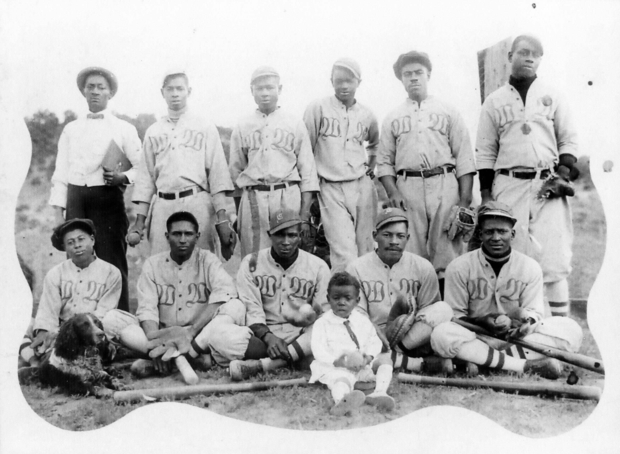 Olathe team, managed by Arthur “Art” Loper, at the Denver Post Tournament, Merchants Park, Denver, 1925. Players include Johnny “Kid” West (first row, fourth from left; played left field and pitcher), Oscar Roatcap (standing, far right; played first base), R. Roatcap (center field), Walt Honeycutt (first row, third from right; pitcher), Joe Mills (catcher), Ramsey (second base), Holland (shortstop), Evans (third base), Williams (right field), Ament (pitcher), Greer (pitcher), Atkins (catcher), Hyatt (utility), Grantham (utility), Anderson (utility).