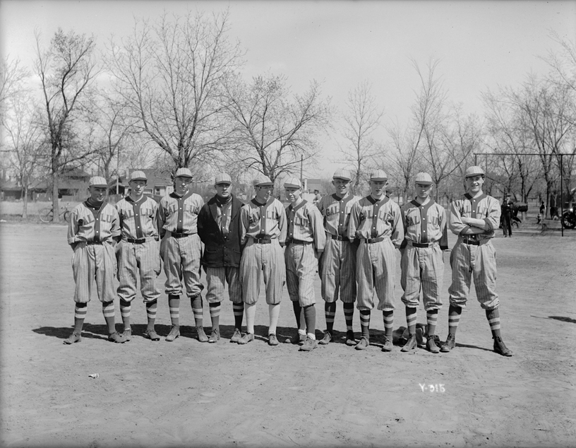 The use of the term “organized” in this article refers to the development and structure of teams in Colorado and not professional baseball. In the photographs, whenever possible, a player’s name, position or role with the team, and location in the photo is noted. In some cases, only the last name of the player is known. In others, names are known but not who’s who in the photo. If you have any additional information about any team or player featured here, please share!