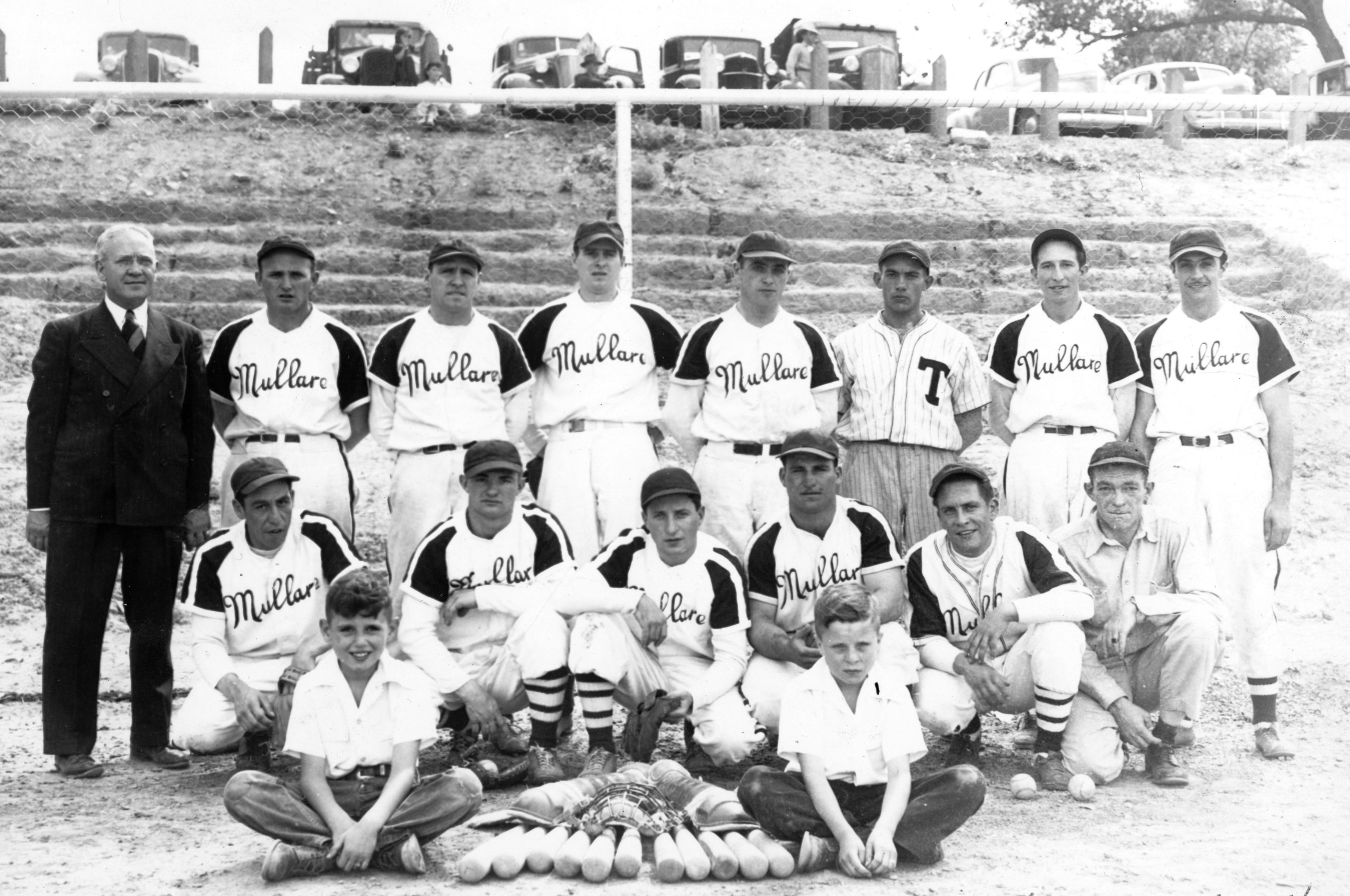 Mullare Funeral Home team, Trinidad, about 1940. Mullare’s was owned by George E. Mullare (1871–1935), pictured at far left. Team pitcher Joe Bonacquisti (1911–2004) stands in the back row, fifth from left. All others unidentified. Courtesy Rich Bonacquista, History Colorado CIAPA Collection. PCCL4368