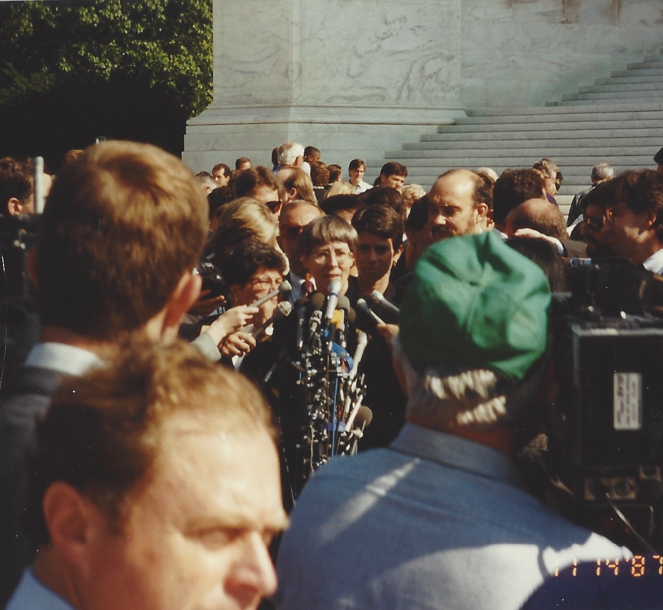 When Jean’s cab pulled up in front of the U.S. Supreme Court on that clear, crisp Indian summer day in October of 1995, she saw bedlam in every direction. On the sidewalk, in the court plaza, and on the streets. Two long, ragged lines snaked around the block, one for those with tickets and reserved seats and another for those without tickets, waiting, hoping they would be allowed inside the Supreme Court chambers to witness the proceedings for themselves.